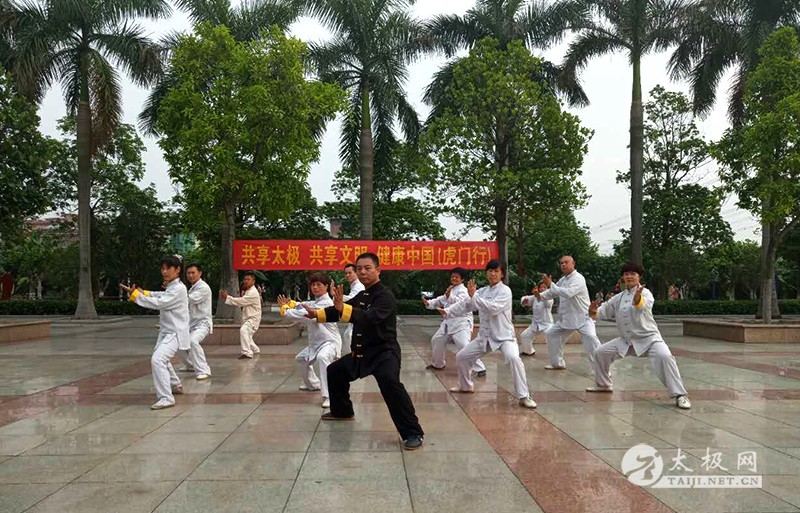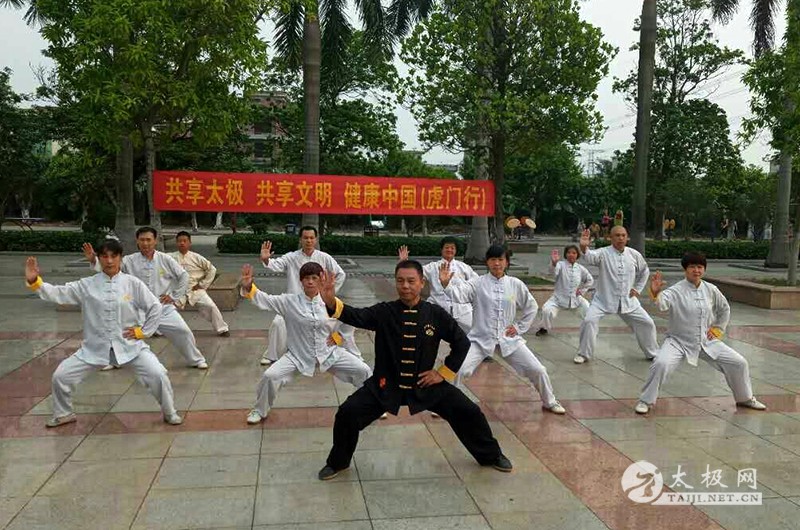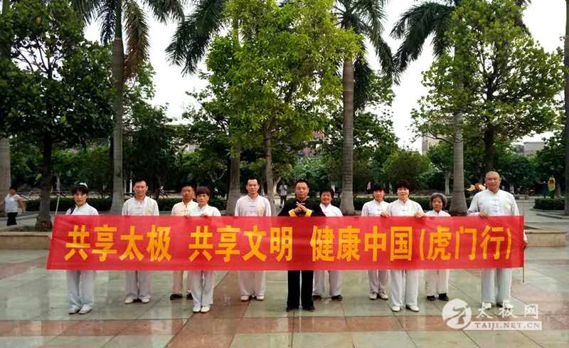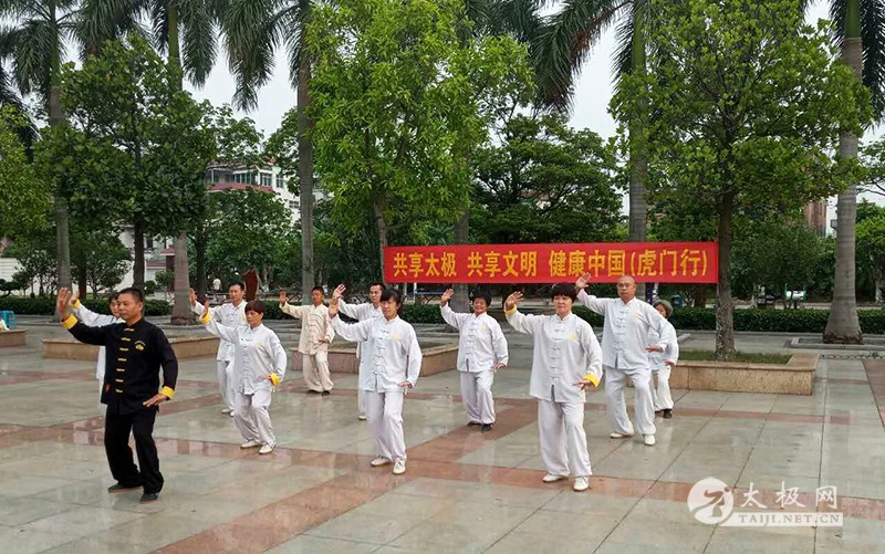 百城千万人太极拳展演东莞虎门站 (太极网报道)2017世界百城千万人太极拳展演活动自9月1日于太极拳发源地陈家沟拉开序幕,持续近一周时间,热浪席卷全球,千万太极拳爱好者共享太极盛事。 9月6日,2017世界百城千万人太极拳展演活动东莞虎门站,由陈照森入室弟子吴贞益领衔组织,13名太极拳爱好者在虎门沙角社区广场展开演练活动。由于各种组织原因限制,虽然仅仅只有13名参演人员,但大家都格外认真,一招一式的演练,太极的魅力吸引着大家,共享太极、共享健康,为百城千万人太极拳演练贡献自己的一份力量。 |