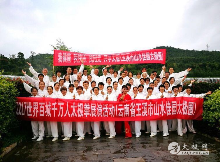 2017世界百城千万人太极拳展演云南玉溪站 (太极网报道)2017世界百城千万人太极拳展演活动自9月1日于太极拳发源地陈家沟拉开序幕,持续近一周时间,热浪席卷全球,千万太极拳爱好者共享太极盛事。近日,2016年度最美太极人杨丽媛老师组织云南省玉溪市山水佳园太极圈百余名拳友于青山绿水间潺潺流水旁共武太极神韵,助力太极拳展演活动。伴随着悠扬的背景音乐,拳友们整齐划一的太极拳表演与秀丽的自然风光浑然一体,充分展示了太极拳的无穷魅力。 |