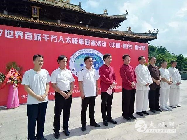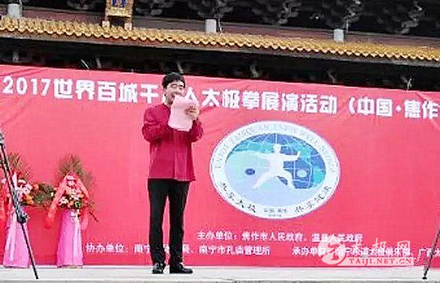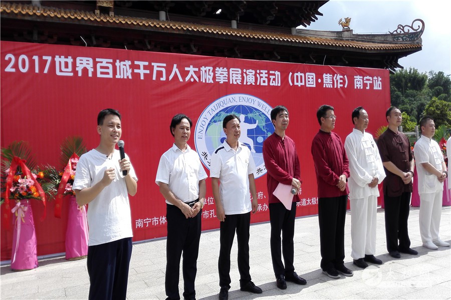 活动启动仪式现场 9月9日上午,2017世界百城千万人太极拳展演活动(南宁站)启动仪式在绿水青山环抱的南宁孔庙举行。广西武警总队副司令员钟全义,南宁市委外宣办主任黄光荣,焦作市人大常委会副主任郜小方,温县人大常委会副主任李建,以及温县太极拳名师、南宁市乐道太极俱乐部的创始人兼总教练董志鸿等太极拳师出席展演启动仪式。 焦作市人大副主任郜小方致发布词 温县人大副主任李健主持启动仪式 展演仪式上,来自乐道太极俱乐部、广西太极汇、道弘太极俱乐部、瀚锋太极会所、石门武术站、南宁老年人武术学会的社区辅导站,以及南宁市商协会和部分企事业单位的300多名太极拳爱好者,在中国传统文化的教育基地南宁孔庙集体演练,飘逸洒脱的太极拳表演与精致典雅的庙宇相得益彰。队员们内劲饱满,行云流水的精彩太极演练,使得周末的游人纷纷拿起手机,留下精美的瞬间。也为正在南宁举办的第十四届中国-东盟博览会增添一道亮丽的风景线。 太极拳爱好者在演练太极拳 展演现场,参加演练的太极拳爱好者既有满头白发的老人,也有年轻阳光的白领,还有几岁和十几岁的少年儿童。通过这次太极展演活动再次激起了南宁市民群众的太极热。 责任编辑:太极网安安 |