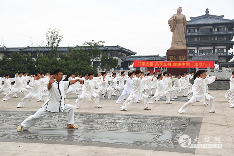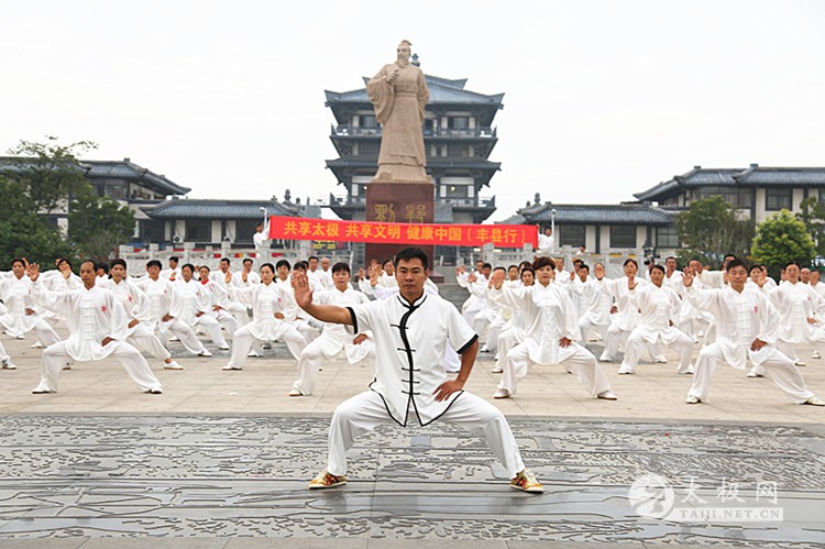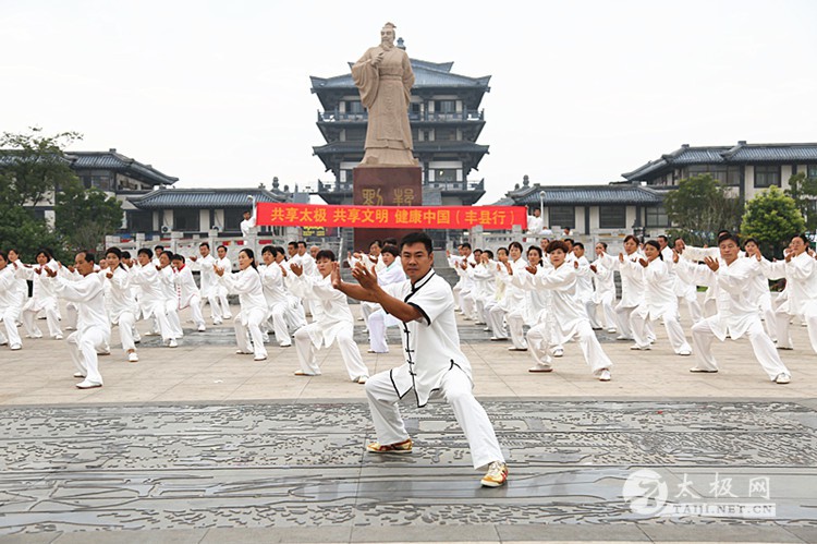 (太极网报道)2017世界百城千万人太极拳展演活动自9月1日于太极拳发源地陈家沟拉开序幕,持续近一周时间,热浪席卷全球,千万太极拳爱好者共享太极盛事。 9月9日,陈正雷太极丰县凤城镇太极拳协会在史建华老师的积极组织下,200余名太极拳爱好者于江苏丰县刘邦广场共武太极,助力2017世界百城千万人太极拳展演活动,全力助推太极拳申遗。200余名拳友身着统一太极服,动作整齐划一,充分彰显太极拳无穷魅力,用实际行动印证着展演活动主题:“共享太极 共享文明 健康中国行”! |