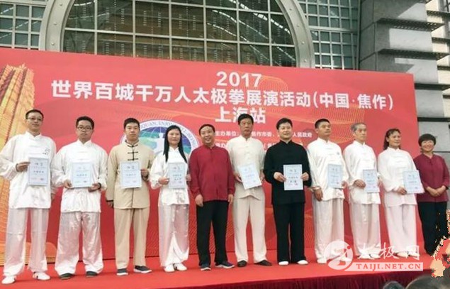 2017世界百城千万人太极拳展演上海站 (太极网上海讯)9月10日上午9时,在上海市金茂集团大厦门口,百城千万人太极拳展演上海站隆重启动。中国金茂集团有限公司副总裁唐咏、总裁助理张伟,焦作市人大常委会副主任葛探宇,温县政协主席郑爱珍,温县政协党组副书记张明剑,优秀太极拳传承人申小建、陈有则等出席启动仪式。太极网创始人、中华太极拳传承谱系编委会主任刘洪奇出席活动。 焦作市人大常委会副主任葛探宇致辞 颁发“优秀组织奖”和“传播使者”荣誉证书 仪式上,葛探宇致辞,唐咏宣布活动开始,申小建宣读百城千万人太极拳展演上海站倡议书。葛探宇为获奖个人及单位颁发了“优秀组织奖”和“传播使者”荣誉证书。 上海申健太极拳馆、精武会上海报业集团辅导站、尊古太极陈有则上海分会、弘道太极拳馆、律政达人太极队、上海精武徐汇区凌云特色武术队等参与展演。 金茂大厦毗邻上海地标性建筑物东方明珠、上海环球金融中心和上海中心大厦,与浦西的外滩隔岸相对,是上海市最著名的景点以及地标之一。展演现场,300多名太极拳爱好者身穿潇洒飘逸的太极服,在优美乐曲的伴奏下,首先分九个方队先后演练了原汁原味的太极拳及器械,随后参与演练的全体成员共武太极,引来众多上海市民纷纷观看,为繁华上海平添了一道靓丽的太极风景线。 申小健团队展演 2005年,当时20多岁来自太极拳发源地温县的申小建独自来到上海,教授原汁原味的陈家沟太极拳。几年的辛苦耕耘,终有收获,他的精湛拳艺和诚信为人得到了一大批白领,企业界人士,新闻工作者以及外籍人士的认可,成为他的忠实学生。2011年他在长宁区创办了他的第一个太极拳馆,取名“上海申健太极拳馆”,开始了他的传播之路。 现在他的拳馆不但为申城市民的全民健身发挥着积极作用,而且成为向外国友人宣传中国文化的重要基地之一。百城千万人太极拳展演活动开展以来,他更是积极响应,组织了上海站演练活动。 责任编辑:太极网李超 |