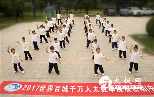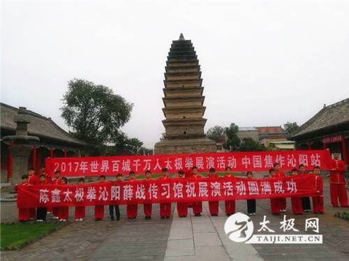 陈鑫太极拳沁阳薛战传习馆以“学太极,练太极,做阳光自信、勇敢有为的中国好少年”为宗旨,致力于青少年太极拳人才的教育和传承。 为响应2017世界百城千万人太极拳展演活动,让太极拳的魅力感召到更多的人,让“共享太极、共享健康”理念更加深入人心,传习馆组织全体小学员在沁阳市历史悠久的三圣塔下演练太极拳,鲜艳的红色表演服,映衬着一张张稚嫩的小脸,动作虽还不到位,却浸透着孩子们的认真与坚持。古塔映照着习武少年,呈现给人们一幅古今传承图,围观者纷纷鼓掌,为孩子们的表演点赞! 弘扬国粹,传承太极,必须从少年做起!