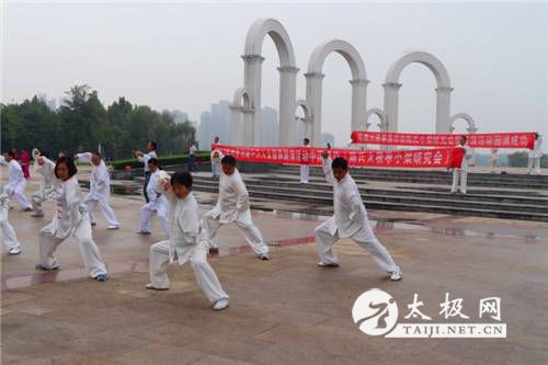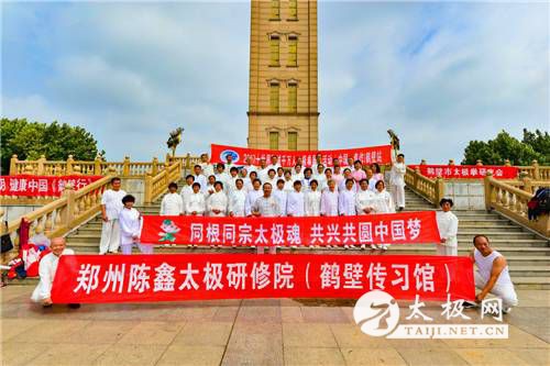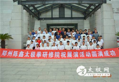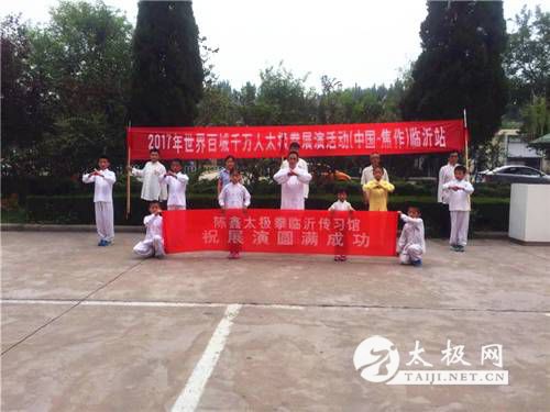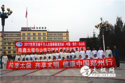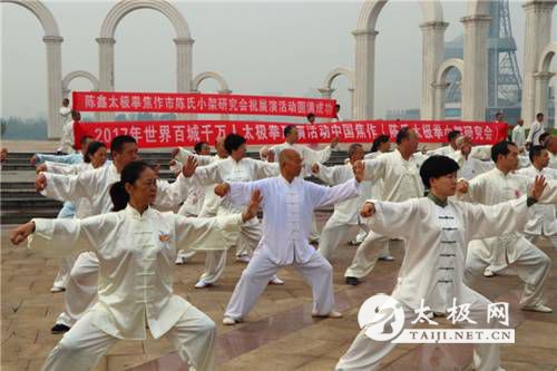 为更好的弘扬太极文化、传播太极拳,"陈氏三杰″陈沛菊、陈沛山、陈沛林向国内外全体陈鑫太极拳拳友们发出倡仪: 为大力支持太极拳圣地焦作、温县的太极拳展演活动,各地传习馆要广泛发动,拳友要踊跃参与,大力宣传,并确定9月9日9点为“陈鑫太极拳演练日”。 此次展演活动共有“陈氏三杰”的全国近千名学员弟子参加,郑州、焦作、沁阳、安阳、鹤壁、新乡、四川什邡、吉林长春、江苏海安、云南昆明、山东临沂、天津、白山等地的30多所传习馆举行了陈鑫太极拳展演活动。各地学员有序排列,动作整齐划一,连绵不绝的队列循环往复,太极起势柔若绵绵秋雨,金刚捣碓刚如龙起渊泽,时而飘逸潇洒,时而阳刚威仪的拳姿,尽展陈鑫太极拳儒雅端庄、严谨精妙、松柔圆活的风采,一场场展演锁定了围观者的眼球,大家纷纷拿起手机和相机,定格下这美好的瞬间。 “陈氏三杰”助力世界百城千万人太极拳展演,在各地展开了一幅幅靓丽的太极画卷,进一步扩大了太极拳的知名度。 陈鑫太极拳郑州升达传习馆以青少年教育为主独具特色。本馆最小学员5岁,最大的也就18岁,他们在香港国际武术节和焦作国际太极拳年会以及省市武术比赛当中都取得了优异的成绩,数人考上大学,我们将陈鑫太极拳作为武术教育取得了显著的成效。 为使“共享太极,共享健康”理念深入人心,传习馆在郑州升达艺术馆举行了展演活动,陈式太极拳第十一代传人陈沛林老师到现场致致词并宣布开幕,馆长王振虎宣读了“共享太极,共享健康”倡议书。