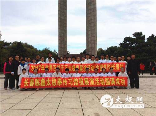 陈鑫太极拳长春传习馆为响应“陈氏三杰”号令,于9月9日9时9分,在长春市南湖公园长春解放纪念碑广场,馆长刁国义和教练员贺成带领30余名学员,伴随着春江花月夜背景音乐,愉快地完成了陈鑫太极拳展演。