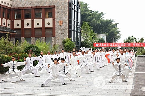 9月9日,由兴文县太极中心倡仪发起的“共享太极、 共享文明、健康中国”2017世界千万人太极拳爱好者共同展演大型活动,在光明坝僰王山风景区启动。兴文太极中心约70名太极拳习练者集中演练和分散演练,9时在兴文县广明坝市民广场全体学员们演练了陈氏太极拳老架一路和。随后,集中统一出发兴文站僰王山,让全体太极拳爱好者共享太极盛事。 10时许,在僰王山风景区寿山湖展演了陈式太极拳。学员们进入僰王山香格里亚,兴文太极中心天府翰墨舞乐太极院分班分套路分别展演了陈氏太极拳老架一路,老架二路、国家规定套路、综合太极拳28式、综合太极拳46式、陈氏太极精要18式、陈氏太极单刀、陈氏太极单剑、以及杨式太极拳套路等。活动现场,兴文太极中心天府翰墨舞乐太极院的学员们身着潇洒飘逸的太极服,伴随着悠杨的乐曲,用优雅的拳姿、将太极拳的动作演绎得如行云流水,展示着兴文太极人的风采。 参与此次展演活动的太极习练者也有来自兴文县各机关企事业单位的离退休老干部,他们秉持着心中对太极拳的热爱,以整齐划一的动作献礼2017世界百城千万人太极拳展演活动,充分展现了太极人独有的气质,彰显太极拳的独特魅力。传播“共享太极、共享文明、健康中国”生活理念,享受健康人生。 据悉,之所以重点在僰王山风景区搞这次活动,主要也是推广兴文的旅游事业,同时也是支持太极拳申请世界非物质文化遗产名录。 兴文太极中心总教练,天府翰墨舞乐太极院院长陈小旺大师入室弟子陈小春在接受笔者采访时说:2017年百城千万人太极拳展演活动由太极拳发源地——温县陈家沟发起,太极拳是中国的优秀传统文化,通过这样的活动,旨在带动全民健身,把太极拳推向全国、全世界、展示中国太极文化。 责任编辑:太极网安安 |