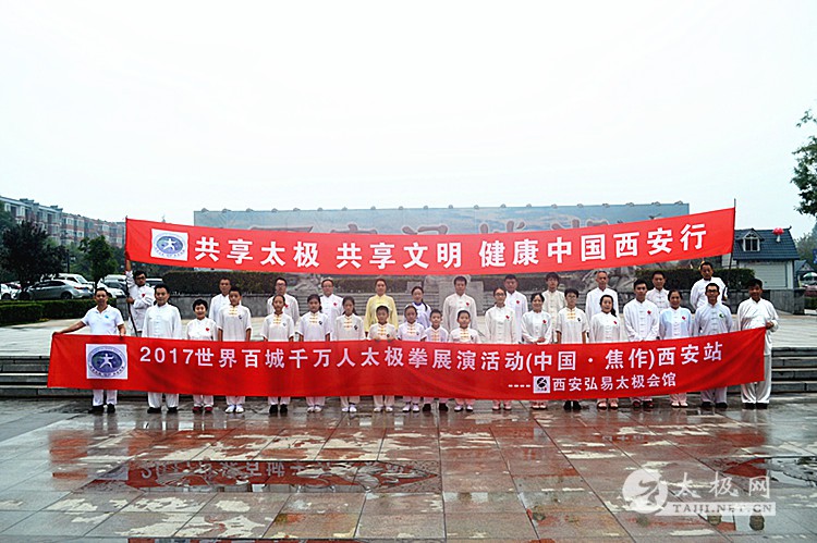 (太极网报道)2017世界百城千万人太极拳展演活动自9月1日于太极拳发源地温县陈家沟拉开序幕,随着展演活动在世界各地的持续延伸,千万太极拳爱好者共享太极盛宴,助力太极拳申遗。 世界陈小旺太极拳总会西安分会西安弘易太极会馆积极响应太极拳发源地温县陈家沟"共享太极 共享健康"号召和世界陈小旺太极拳总会倡议:9月9日为“陈小旺太极拳日”暨“陈小旺弟子展演日”的号召,世界陈小旺太极拳总会西安分会会长、西安弘易太极会馆会长职永成,西安分会秘书长兴炎,陈小旺老师弟子周毅、林立祥等在9月9日组织太极拳爱好者在西安市汉城湖公园冒雨坚持参演2017世界百城千万人太极拳展演活动。 西安弘易太极会馆参演百城千万人太极拳展演活动 近百名太极拳爱好者共同参演展演,他们中有白发苍苍的老人,也有一脸稚嫩的孩童,他们身着统一的白色太极服,与全球太极拳共享这次太极盛宴。 职永成领练 西安弘易太极会馆参演百城千万人太极拳展演活动 职永成,河南温县人,陈式太极拳大架第十二代传人,师承陈小旺。陈式太极拳小架第十三代传人,师承陈永福。2016太极网传播盛典年度表彰活动 “十大优秀馆校长”,现任西安弘易太极文化传播有限公司董事长,西安弘易太极会馆会长兼总教练,世界陈小旺太极拳总会西安分会会长等 责任编辑:太极网安安 |