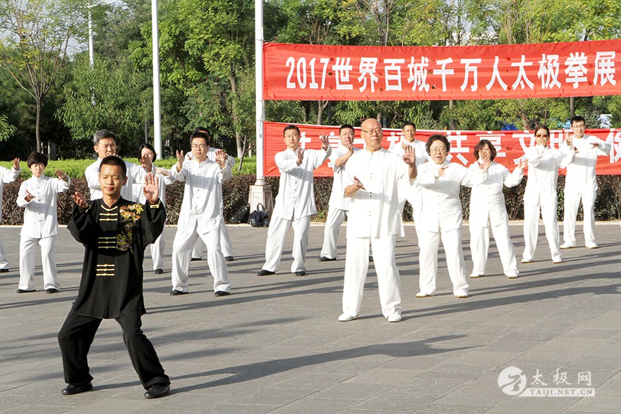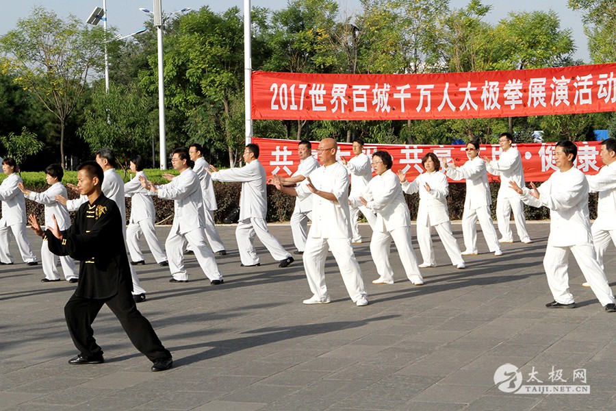 陈照森太极体系百城千万人太极拳展演 (太极网报道)2017世界百城千万人太极拳展演活动自9月1日于陈家沟拉开序幕,历经数十日依旧热度不减,在全国乃至全球掀起了一股太极拳的热浪。太极拳大师“大刀王”陈照森向陈照森太极拳体系全体成员发出倡议书,号召体系成员积极参加展演活动,展示太极拳风采,展现太极人英姿,助力太极拳申遗,推动太极拳发展。 |