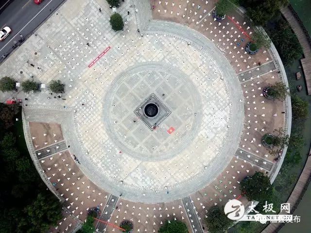 600余名太极拳爱好者齐聚宏大广阔的宝鼎广场,俯瞰现场,600余名太极拳人星罗棋布,蔚为壮观,拉近镜头,每个人都认真投入,一招一式韵味十足,金刚捣锥沉雄浑厚,白鹤亮翅灵动欲飞,传统与现代交相辉映,场面壮观震撼,显示太极拳的勃勃生机和人类文明的绵恒广博。宏伟的场面也吸引了当地的摄影爱好者,广场上空,各类航拍飞行器在空中翩翩起舞,广场上,围观的群众也纷纷拿起手机,把这令人惊艳的一幕定格下来。一时间,太极拳展演刷爆了镇江市民的朋友圈。