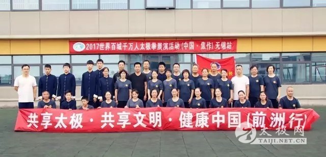 2017世界百城千万人展演活动自9月1日于太极拳发源地陈家沟拉开序幕至今已持续将近半个月。十多天来,太极拳展演遍地开花,铺天盖地,如火如荼,劲风不减,成为全国乃至全世界的一道靓丽风景线。“虎啸太极”这朵太极拳界的奇花异卉,在这场太极人的盛会中,用虎虎生气,展现“虎啸太极”助力展演的热情,进一步弘扬太极的决心! 无锡东港 “虎啸太极”是由太极拳著名传承人陈大虎、陈二虎、陈三虎合力创办,在全国开设多家分馆和俱乐部。多年来为武术界培养了大量的武术人才。为助力百城千万人太极拳展演活动,连日来,“陈氏三虎”号召全国各地分馆、站、俱乐部接力展演,开展了数十场太极拳展演活动! 无锡江阴 在江阴市体育馆,2017世界百城千万人太极拳展演活动江阴站盛大启动。活动在江阴市虎啸太极俱乐部职龙龙、闫锦旗两位教练的带领和组织下,300余名太极拳爱好者参与百城千万人太极拳展演活动公益展示。展演现场,拳友们齐练太极,动作整齐划一,场面壮观,充分展现了太极拳的无穷魅力。 无锡洛社 虎啸太极在无锡圈粉无数。连日来,仅“虎啸太极”的粉丝就在无锡组织了十多场太极拳展演。无锡东港镇的中心花园,在东港虎啸太极俱乐部组织下,由俱乐部总教练陈二伟的领练的400名名太极拳爱好者同练太极拳,场面蔚为壮观。在锡北镇泉山文化公园广场,2017世界百城千万人太极拳展演活动无锡虎啸太极锡北站展演活动盛大开幕。活动随着悠扬的古乐“春江花月夜”拉开序幕。数百多名太极拳爱好者,身着黑白两色太服齐聚广场。队伍整齐排列,拳姿行云流水。无锡堰桥的展演也精彩纷呈。该场活动由陈家沟虎啸太极堰桥推广中心馆长王宝印组织,100余名太极拳爱好者,于吴文化公园开展了展演。无锡站的一系列活动,声势浩大,影响深远,推动了太极拳的普及与发展。 无锡前洲 “虎啸太极”在“中国第一农民城” 苍南龙港镇有深厚的群众基础,为这一方热土培养一大批太极拳骨干,并在苍南、龙港等地设立了拳馆,辅导站点等,这里的展演活动更是此起彼伏。杨美娇是龙港活动的主要组织者之一。谈起百城千万人演练活动,杨美娇介绍说:“接到陈大虎老师要求我们积极参加百城千万人展演活动的通知之后,立即行动,我们连络通知馆内骨干,组织会员,很快制定了活动方案。随后,大家每天和会员们一起,凌晨四点多就起床去排练,希望把龙港太极拳最美的一面展示给世界。” 无锡钱塘桥