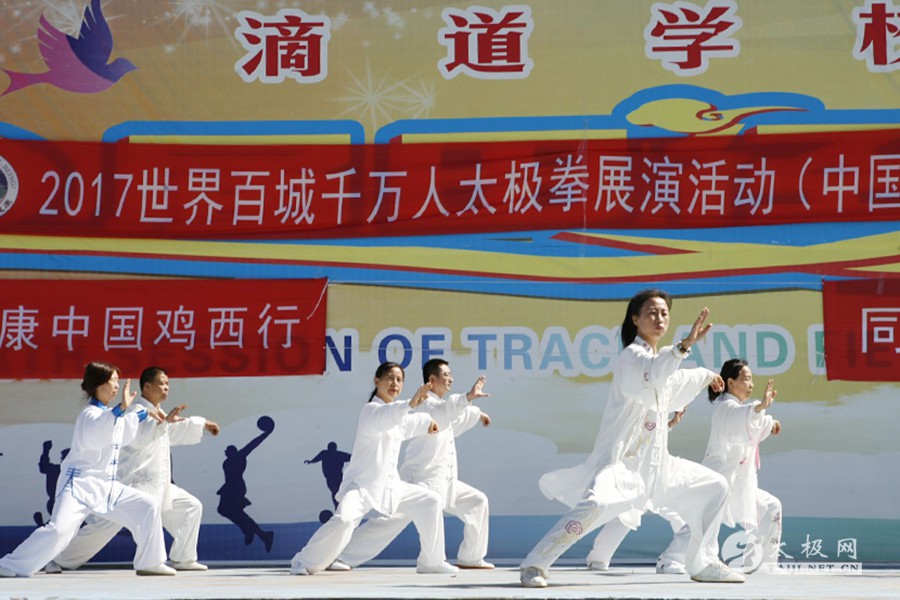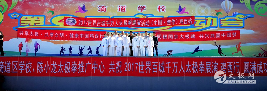 (太极网报道)2017世界百城千万人太极拳展演活动自9月1日于陈家沟拉开序幕,历经数十日依旧热度不减,在全国乃至全球掀起了一股太极拳的热浪。 2017年世界百城千万人鸡西站太极拳展演活动于黑龙江省鸡西市滴道区学校举行。在鸡西陈小龙太极拳推广中心、陈照森大师入室弟子陈小龙倡导下,太极拳爱好者及学生1900余人,身着统一服装,共同演练太极拳,场面壮观,规模宏大。 陈小龙,陈式太极拳第十二代传人,中国武术六段,中国武术协会会员,一级拳师。鸡西市太极拳协会创始人,现任鸡西市太极拳文化研究会会长、鸡西陈家沟太极拳功夫学校校长兼总教练,北京怀柔中视腾飞影视学校鸡西地区选拔培训基地主任等职。 陈小龙自幼习武,1986年从师于太极大师陈照森学习陈式太极拳老架一路、二路、太极刀等拳械。先后受陈小旺、陈正雷、陈小星、陈孬等太极大师指点。 自1989年起先后在滴道创新小学、黑龙江技师学院、国税局、公安分局、鸡西市市委、哈尔滨市等近30多个地方和单位进行传拳,直接受益者达万人。 1996年参加黑龙江省太极拳协会主办的首届全省42式太极拳、剑教练员提高班,并拜著名武术家张继修为师。2006年6月拜吴氏太极拳第4代传人、武术大赛总裁李承祥老师为师。 陈小龙立志于太极拳事业,从1996年起,多次在各种太极拳比赛中担任裁判长。多次带队参加省、市、全国、国际大型武术比赛,获奖牌百余枚。事迹多次被鸡西广播电台、电视台、日报等媒体报道。其个人事迹被收录《陈氏太极拳志》、《中国太极拳优秀人才名录》等书中。2010年被中国太极拳文化研究基地授予“太极拳名师”称号,2011年被评选为“2010中华太极拳杰出传承人”。 以下为活动现场照片: 2017世界百城千万人太极拳展演鸡西站 2017世界百城千万人太极拳展演鸡西站 2017世界百城千万人太极拳展演鸡西站 2017世界百城千万人太极拳展演鸡西站 2017世界百城千万人太极拳展演鸡西站 2017世界百城千万人太极拳展演鸡西站 2017世界百城千万人太极拳展演鸡西站 2017世界百城千万人太极拳展演鸡西站 2017世界百城千万人太极拳展演鸡西站 2017世界百城千万人太极拳展演鸡西站 2017世界百城千万人太极拳展演鸡西站 2017世界百城千万人太极拳展演鸡西站 2017世界百城千万人太极拳展演鸡西站 2017世界百城千万人太极拳展演鸡西站 2017世界百城千万人太极拳展演鸡西站 责任编辑:太极网小洁 |