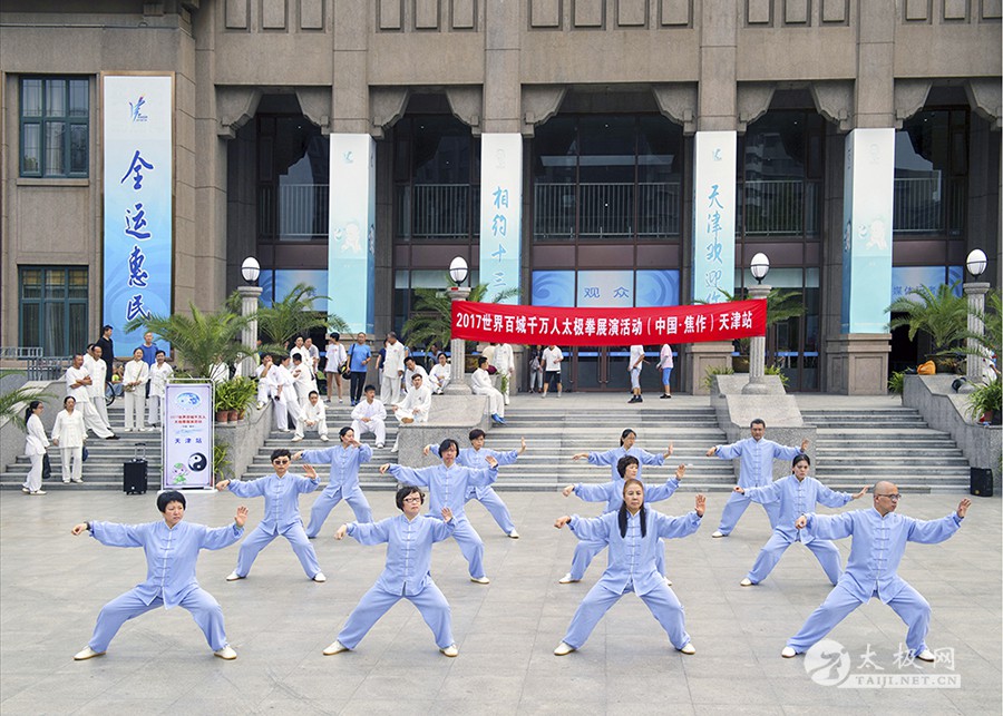天津恒义太极2017百城千万人太极拳展演活动 (太极网报道)2017世界百城千万人太极拳展演活动自9月1日于太极拳发源地温县陈家沟拉开帷幕,短短一周席卷全球,世界处处武动太极神韵。在金秋九月这个秋高气爽,充满诗意与浪漫的季节,百城千万人太极拳展演天津站大幕开启! 9月10日上午8点,在天津恒义太极拳馆馆长张恒义的领衔组织下,恒义和平拳馆、河东拳馆、南开拳馆、静海大邱庄拳馆、恒义水上辅导站及中国银行天津分行、天津中美史克等各分馆及辅导站等共三百余名拳友,在天津市人民体育馆正式启动“共享太极共享健康”2017世界百城千万人太极拳展演活动(天津站)仪式。 张恒义领练展演活动 张恒义领练太极拳展演 张恒义,太极拳发源地温县陈家沟人,国际太极拳大师陈小星亲传弟子,陈式太极拳第十二代传人。中国太极名家,国家一级拳师,国家一级裁判,国家武术段位指导员。现任陈家沟太极拳协会天津分会会长,天津陈小星拳法研究会会长,太极网天津分站站长,天津恒義太极拳馆馆长,陈家沟太极拳学校高级教练,陈家沟太极五義之一。 为响应太极拳发源地家乡人民政府的百城千万人演练号召,将“共享太极 共享健康”的口号化为行动,出身陈家沟立足天津传播太极的张恒义第一时间积极倡议和组织太极拳爱好者参与展演,才有了这一幕声势浩大的天津站展演活动。 天津恒义太极 2017百城千万人太极拳展演活动 天津恒义太极 2017百城千万人太极拳展演活动 拳友以精神抖擞,拳术精湛、动作优美刚劲整齐划一,队形变化巧妙,一招一式娴熟认真的拳姿演绎着太极文武兼修的魅力,传播了“共享太极,共享健康”的生活理念,为推动当地全民健身运动发展做出了巨大贡献,同时为太极拳申遗助力。 在展演活动现场,在柔和的背景音乐中,恒义太极各拳馆拳友分别表演了太极拳、太极剑、太极青龙偃月刀、太极扇等节目。 恒义各拳馆代表学员分别进行展示 表演者们全神贯注,神态自若,动作舒展,排列有序,用动中有静、静中有动的动作,用优美的扇舞金凤、剑若游龙、掌拳跌出、云手翻飞的招式展示了太极的无限魅力;展示了崇尚健身,快乐生活,蓬勃旺盛的精神风貌。 精彩的表演也让当天很多来此锻炼的人们情不自禁地驻足观看,成为天津市人民体育馆内一道独特的风景线。 最后参加展演活动拳友们振臂高呼“共享太极,共享文明,健康中国天津行,同根同宗太极魂,共兴共圆中国梦”,将此次展演活动画上了圆满句号。 恒义太极拳馆: 2003年由陈家沟陈氏第十九世太极拳掌门人陈小旺大师和陈小星大师正式授权,张恒义创立天津恒义太极拳馆,一所集健身、练功、疗养于一体,教学管理一流的专业拳馆。恒义拳馆拥有专业的陈家沟教练团队馆,坚持推行标准化的教学模式,坚持科学的管理;走上了一条优良的发展轨迹。2011年成立恒义河东分馆,2015年成立恒义南开分馆。 恒义拳馆开馆以来教授学员达上万人,接待数名来自美国、英国、意大利、加拿大、西班牙、日本、德国、等国外太极拳爱好者,深受国内外学生好评。天津卫视、天津电视台曾多次对其进行了采访报道。 责任编辑:太极网小田 |