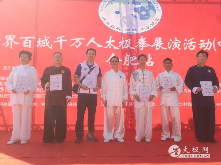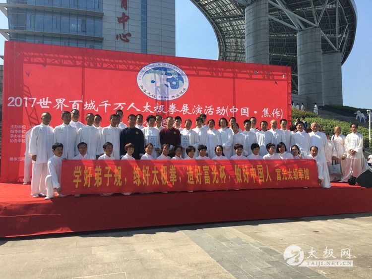 为响应太极拳发源地焦作市温县政府将“共享太极 共享健康”的口号,富光世清太极馆长,中国武术七段,国际太极拳文化传播大使倪世清第一时间积极组织弟子和学员们参与展演排练活动。 当天展演气势宏大,1000余名太极拳爱好者随着轻柔舒缓的经典音乐拉开动静相彰的太极画卷,拳友以精神抖擞,拳术精湛、动作优美刚劲整齐划一,队形变化巧妙,一招一式娴熟认真的拳姿演绎着太极文武兼修的魅力,传播了“共享太极,共享健康”的生活理念,为推动当地全民健身运动发展做出了巨大贡献,同时为太极拳申遗助力。 富光·世清太极拳馆拳友们现场还演练了陈式太极拳综合套路、春秋大刀、太极单刀、双刀,太极单剑,双剑,双节棍,推手,苗刀,太极棒,太极大杆等拳术器械混合展演。 气象万千的展演,显示出了太极人自信阳光、朝气蓬勃的精气神,活动当天很多人情不自禁地驻足观看,成为合肥市一道独特的风景线。