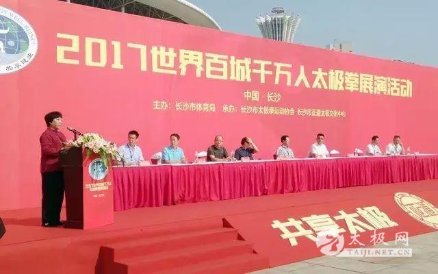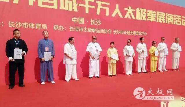 百城千万人太极拳展演在长沙市站展演现场 9月16日上午9时,百城千万人太极拳展演在长沙市站如期举行。 在长沙市贺龙体育馆贺龙广场,活动在《健康中国》大型击矢表演中拉开帷幕。长沙市体育局党委委员工会主席钟国林致欢迎词,温县人大常委副主任原玉芹、长沙市太极拳运协会执行主席秘书长邹泽群、湖南省体育局副巡视员、湖南省武术协会主席陈正培分别作了讲话,长沙市体育局党委书记李文格宣布活动开始。 温县人大常委副主任原玉芹讲话 为优秀组织者颁奖 展演现场,近千名太极拳爱好者参加展演。《传承》大型太极拳武术情景秀现场唯美,十位太极拳名家的太极拳技法动人心魄,陈氏太极拳正道太极院团队表演气势磅礴。近千名太极人拳姿刚柔并济,演练行云流水,为该市市民奉献了一场唯美的视觉盛宴。 长沙市人杰地灵,崇文尚武,太极拳习练者众多。自百城千万人太极拳演练活动开展以来,启动仪式得到了该市各级领导、各级部门和广大拳师的大力支持。当地众太极拳爱好者更是热情高涨,已提前组织集中、分散演练多场,让太极拳又一次走进社区,走进医院,走进校园,亮相广场,吸引了当地市民的眼球。 责任编辑:太极网小田 |