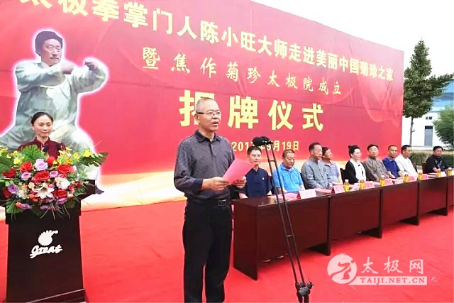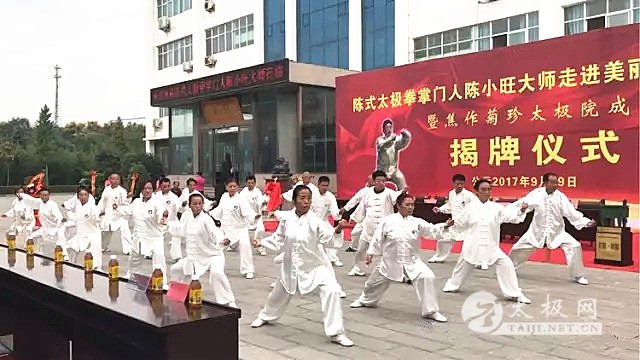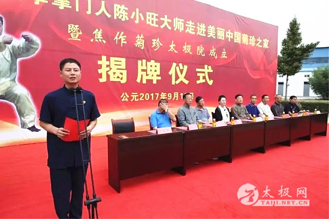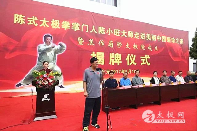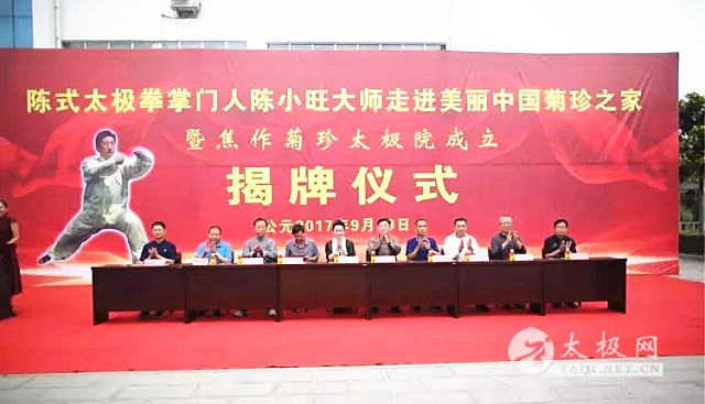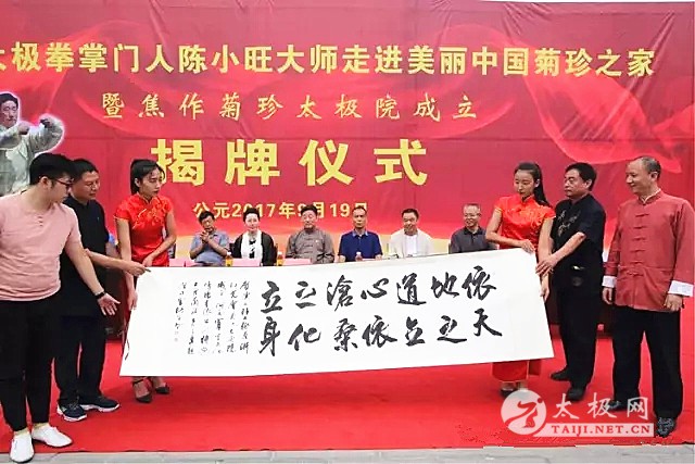 (太极网报道)9月19日,焦作陈小旺拳术研究会菊珍太极院正式成立揭牌仪式于焦作菊珍之家隆重举行。陈氏太极拳掌门人陈小旺大师及夫人孙冬侠女士为中国焦作菊珍太极院成立揭牌。出席揭牌仪式的领导及嘉宾还有:焦作市武术协会主席张治远先生;焦作芸岩置业公司董事长、焦作陈小旺拳术研究会荣誉会长宋杰先生;菊珍之家董事长苏连方先生;山东诸城市政协副主席王金堂先生;中国传统文化河南国学会会长戴玉峰先生;焦作陈小旺拳术研究会会长杨建平先生;焦作陈小旺拳术研究会副会长赵庆宝先生;陈小旺大师入室弟子张军伟先生;陈小旺拳术研究会合肥分会会长李从青先生、副会长刘浩先生;陈小旺拳术研究会郑州分会秘书长李伟社先生;河北亿利集团总经理滕兆鹏先生;焦作市筑城建筑有限公司董事长吴兴才先生;焦作市碧海云天大酒店董事长刘明生先生;河南赛孚文化传播有限公司总经理吴祖强先生;安阳市人社局谢百林先生;北清中学校长马全战先生;中国传统文化焦作国学会会长段强先生;中国传统文化焦作市国学会秘书长胡蓉女士;美丽中国志愿者:朱士祥、马素云、范國慶丶杜建新、张静华、毋存燕、闫芳、许海琴、张欣、张银朝。焦作陈式太极拳协会秘书长谷惠玲女士 ;焦作王西安拳法研究会会长祁和平先生、秘书长祁俊东先生;焦作陈正雷太极文化研究会会长王进军先生;焦作朱天才太极拳研究会会长王艳琴女士;焦作陈小星太极拳术研究会会长许安林先生;焦作陈照森太极拳研究会会长王叶女士;焦作日报社高级记者高小豹先生,还有焦作陈小旺太极拳术研究会副会长党国俊、毛春善、司爱卿,副会长兼秘书长张喜欢等领导班子全体成员以及来自全国各地的嘉宾。同时还接到了来自德国柏林陈式太极拳协会利军太极苑成先生、台湾陈式太极拳协会主席许登荣先生、泰国知名瑜伽教授朱新玲女士、中国兵器工业西安第205研究所太极拳爱好者协会发来的贺电:热烈祝贺焦作陈小旺太极拳术研究会菊珍太极院成立!大家共同为中国焦作菊珍太极院的成立送上最真诚的祝贺!陈小旺大师及夫人孙冬侠女士精神饱满,在杨建平会长、赵庆宝副会长、张喜欢副会长的陪同下来到揭牌仪式现场:陈小旺大师与嘉宾朋友亲切握手问好:焦作陈小旺拳术研究会会长杨建平先生致欢迎辞对陈小旺大师和夫人孙冬侠女士及各位领导、嘉宾的到来表示热烈的欢迎和衷心的感谢。杨建平会长在致辞中说:“在这金秋气爽,丹桂飘香恰逢第九届中国焦作国际太极拳交流大赛的美好季节,我们迎来焦作陈小旺拳术研究会菊珍太极院的正式成立,这是研究会的有一件大事和喜事。菊珍太极院以弘扬太极拳文化为宗旨,以普及太极拳知识、提高大众太极拳水平为己任,专门从事太极拳文化交流、研究、传播推广陈氏太极拳的专业传播及培训教学机构。焦作陈小旺拳术研究会将以菊珍太极院的成立为契机,积极开展各类交流培训活动,团结各界太极精英和爱好者,打造焦作本地乃至全省全国的太极高端品牌,取得更加辉煌的成绩。“菊珍之家董事长苏连方先生致词:焦作市武术协会主席张治远先生讲话:揭牌仪式在热烈的气氛中进行:焦作陈小旺拳术研究会会长杨建平先生和副会长赵庆宝先生接收吴祖强先生、 苏方坤先生向菊珍太极院赠送的书画:揭牌仪式后陈小旺大师及夫人和各位嘉宾一起观看了太极拳表演和舞蹈表演:陈小旺大师的精彩表演和指导赢得了大家的阵阵掌声:焦作陈小旺拳术研究会领导合影留念:杨建平会长和来宾合影留念:大家和陈小旺大师合影留念:责任编辑:太极网安安 |