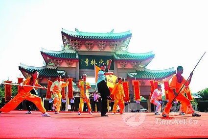 劈砖、碎石、南拳、南刀、南棍、套路、器械、对打,动静结合,刚柔并济,十八般兵器轮番上阵,80分钟的大场面表演博得现场观众喝彩声连连;