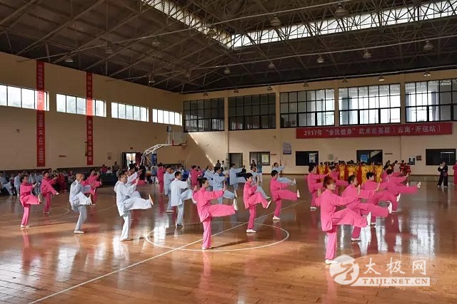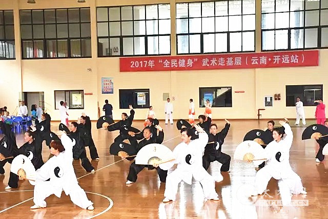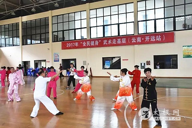| 9月20日上午,国家体育总局武术运动管理中心2017年“全民健身”武术走基层云南开远站活动在市体育运动产业发展中心综合训练馆举行了开幕式。 2017“全民健身”武术走基层活动由国家体育总局武管中心和中国武术协会共同主办,活动以推广传统武术为核心内容,大力开展全民健身武术技术指导和服务工作。 乐白道仁者村委会代表队为现场观众奉上了杨氏太极六段太极拳开场表演。 东城小学代表队朝气蓬勃的武术操《旭日东升》和长拳段位拳一段表演,展现了健康活泼,积极进取的精神风貌。 驻开部队代表队、云南省小龙潭监狱、开远武协和开远市少体校分别进行了形意拳、陈氏十九式、功夫扇和太极拳综合演练以及自选拳械、传统拳械的演练。 陈式太极拳传承人张东武,杨氏太极拳传承人张勇涛;吴氏太极拳传承人宗伟洁;云南武术协会主席胡宝林等5名中国武术专家分别向大家展示了太极拳、形意拳等。 活动现场,吸引了开远的广大武术爱好者竞相拍照留影。 “我们才练了几年是练把式,他们一看就是有内功的人,看着他们打拳很享受。”——一名爱好者说到。 随后,各式太极传承人分别对各展演队及武术爱好者进行了现场点评和技术指导。东武太极研修院院长张东武在广大太极拳爱好者中有着广泛的人气。他的到来,让大家喜出望外,现场汇聚超高人气。 张东武就陈式太极的要点现场做了生动的示范和讲解,针对大家的练习情况给予精心的指导和纠正,大家在和张老师的积极互动交流中,得到了明显进步。 据了解,武术走基层活动启动后,还将开展为期4天(9月20日——23日)的以科普讲座、武术展演和教学辅导的形式到,在当地农村企业部队开展送技术、送服务活动。 责任编辑:太极网安安 |
