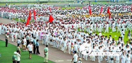 27.何时评选“中华武林百杰”? 1995年12月18~20日,国家体委武术研究院、中国武术协会主办的“中华武林百杰”评选活动在山东省莱阳市揭晓,共评出百名武杰、十大武术教授、十大武术名师、十大武术教练和十大武星。 很多太极拳著名运动员和太极拳名家榜上有名。武林百杰的评选全面肯定了太极拳工作者的辛勤工作,极大地调动了他们的工作热情,鼓励他们为太极拳事业的普及和发展作出更大的贡献。 28.何时开始实行中国武术段位制? 1998年4月17日,国家体委总局武术运动管理中心在北京首次颁发武术段位证书。此次获得段位证书的不仅有德高望重的老太极拳师,也有很多活跃在基层从事太极拳辅导工作的骨干。 为了推动武术运动的发展,提高武术技术与武术理论水平,国家体委武术研究院从20世纪80年代初就组织有关专家就建立武术段位制体系问题展开研究与探讨,并于1994年开始在河南、江苏等省进行试点。 1996年7月邀请国内数十名武术专家对试点工作及段位制的实施细则进行了审定,并提交同年举行的全国武术工作会议审定。经国家体委批准,于1997年下半年开始实行中国武术段位制。 29.第一次万人太极拳表演活动何时何地举行? 1998年10月15日,为纪念邓小平题词“太极拳好”发表20周年暨庆祝中国武术协会成立40周年,在天安门广场举行了盛大的万人太极拳表演。 宏伟的天安门作背景,宽阔的天安门广场作舞台,万名中华儿女一展风姿,集体表演太极拳。