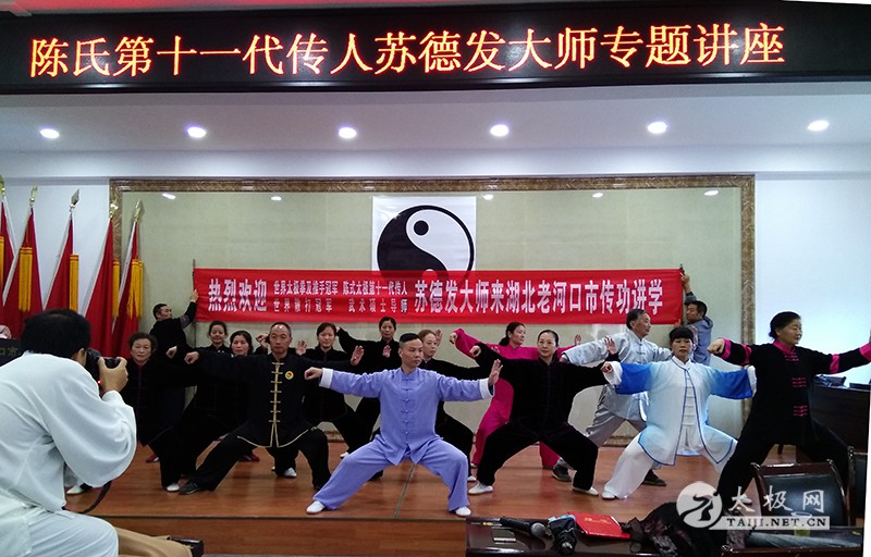 十一长假,太极名家苏德发在湖北老河口传功授课。 武当山麓,汉水河畔,美丽而古老的小城湖北老河口。太极名家苏德发受老河口市太极协会的极力邀请为拳友进行了为期一周的提高指导。 提高培训班在老河口市市委党校举行,市政协、市委老年体育协会、市文化体育旅游局领导出席会议并致欢迎辞。新任会长黄东生代表协会颁发了聘请苏德发大师为高级武术指导的聘书。 理论培训班上,苏老师为拳友展示了精彩的陈氏传统套路、筋骨齐鸣及脊椎节节松开蠕动功法,详细讲授习练太极拳时的注意事项,逐一演示热身运动的基本要领及太极养生功系统的训练方法。清晨,苏老师又来到滨江公园练功场,认真为广大拳友捏架子,演示缠丝劲、桩功训练要旨、推手要领。接地气的讲授,平易耐心的指导,刚劲雄浑的展演,赢得拳友阵阵掌声,赞叹惊呼。苏老师为期一周高水平的指导训练极大提高了该市太极拳运动的水平。 老河口市太极拳协会成立于1988年,已有二十九年历史,是湖北省成立较早的太极群团组织,现已发展成为全市影响最广、群众基础最广泛,练习人数超过2000人的武术和全民健身运动组织。通过推广普及,提升积累,该市太极拳友先后在河北承德、河南焦作,湖北武当等国际、国内大赛中获得金牌71枚,其表演、竞技水平在全省县级市中名列前茅,成为老河口市对外体育文化交流的一张名片。 苏德发大师(中)与会长黄东生、副会长樊文霜 太极名家苏德发简历: 苏德发,号称"太极逍遥王子",自幼习练家传南拳,毕业于武汉体育学院,武术硕士研究生,运动学专家,原国家队武英级运动员,国家一级武士。曾多次获得全国60公斤级散打冠军,陈氏太极拳及推手世界冠军,中国武术七段,中华太极优秀传承人,国际太极拳文化传播大使。 早期跟随上海心意拳大师凌翔龙,形意掌门人李鑫、武汉陈重喜大师习练形意拳,跟随北京许繁曾大师习练八卦掌,陈家沟四大金刚陈正雷,老河口市周有道、黄石桂洪彬等大师习练太极拳,曾经担任太原市太极推手协会副会长兼教练、老河口太极拳协会总教练。后师从陈式太极拳发源地陈家沟陈世通大师,被纳为入室弟子,成为陈式太极拳第十一代嫡宗传人,国家高级教练,国家级裁判,河南省武术先进个人,太极网及中华武术传承人联合会2016年度"全球太极拳十大影响力人物"。 现任中华武术促进会终身名誉会长兼武术首席导师,河南省新郑市太极拳协会副会长兼总教练,新郑市太极养生馆馆长兼总教练,新郑市陈式太极拳研究会会长兼总教练,世通拳法研究会副会长兼总教练,太极网大拳师平台首席武术导师,太极网大拳师百家讲堂主讲人及全国二十多家太极拳协会、院校太极技术顾问,学生遍布国内外。 他文武双修、涉猎广泛,研习《道德经》、《黄帝内经》、《易经》等经典著作,学习传统养生学、中医学等。非常热爱中国传统文化,致力于中华太极武学的研究和探索,深入生活,感悟人生,师古不泥,博采众家。通过长期习练切磋渐入佳境,既突破了传统和地域的限制,又注重结合实际变通创新,逐步形成了自己独特的风格,他的拳架古朴无华,舒展大方,步法轻灵稳健,身法中正自然,动静有序、快慢相间、潇洒自如、自然流畅、沉着雄浑、刚柔相济,神行合一。发劲松活弹抖,完整一气,静则百骸皆静,动则全身全动,以内劲为统领,以缠丝劲为核心,以腰为轴,上下相随,节节贯通,如行云流水,连绵不断,如长江大河,滔滔不绝。被武林界称为武术奇才,常胜将军。 |