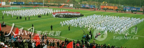 此次大赛共邀请了渝东片区的区县和对口支援巫溪的渝中区组队参赛,与巫溪县紧邻的陕西省镇坪县观摩队也来到现场观摩。大赛为期两天,主要包括渝东片区老年太极拳比赛、巫溪县老年太极拳比赛、巫溪县健身操舞比赛、太极拳专家讲座、巫溪地域文化展演等五项活动。 在团体赛中,999人组成的表演队成了最大的亮点,他们分列成三个333人组成的方阵,其中由333位学生身着黑白服装组成的方阵,在现场组合成了一个黑白分明的特型太极阴阳图案。与此同时,666名老人组成的队伍也不甘示弱,刚柔并济的拳法,赢得了现场观众阵阵掌声。