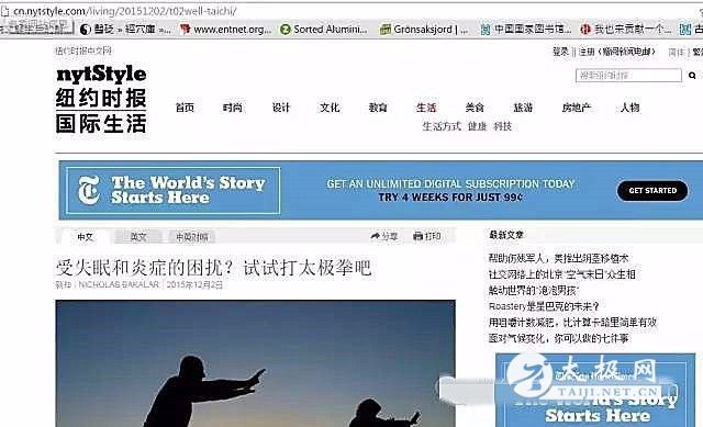 此为2015年12月2日纽约时报中文版的报道。为什么屡屡曲解我国的这个媒体反而会说太极的好?