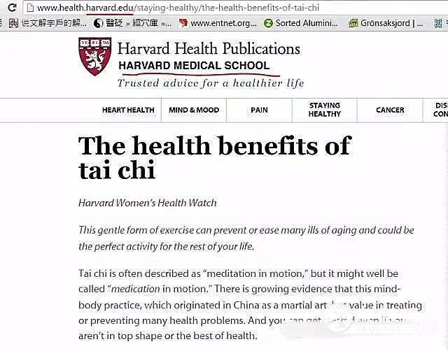 此为来自世界顶尖的哈佛医学院官网健康版块关于太极益处的文章。 为什么小小太极拳会惊动哈佛?