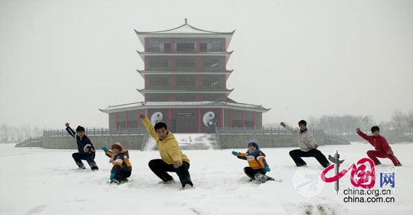 练武人讲究“夏练三伏、冬练三九”,连日里的风雪丝毫不影响河南省焦作市温县陈家沟人练功热情,在村里随时随地可见练太极拳的人。陈家沟是中华太极拳发祥地。陈氏十四世陈长兴广开传拳之门,河北永年人杨露惮即是其著名高徒。之后,陈氏太极拳逐步演变出全国有代表性的“杨、武、吴、孙”等诸大流派。
