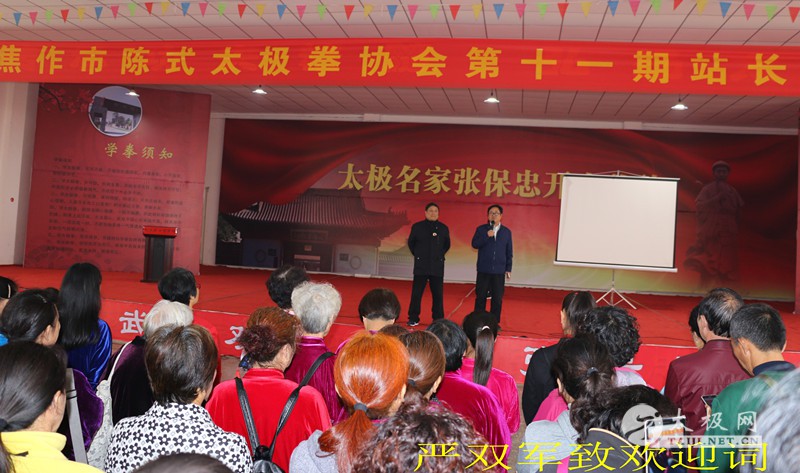 (太极网报道)2017年10月22日,焦作市陈式太极拳协会第十一期站长扩大培训班在温县张保忠武术院开班举行。温县政协副主席严双军在开班仪式上致欢迎词,温县籍著名歌手杨娜的一曲《陈家沟太极拳之歌》,为大家拉开了培训班帷幕。