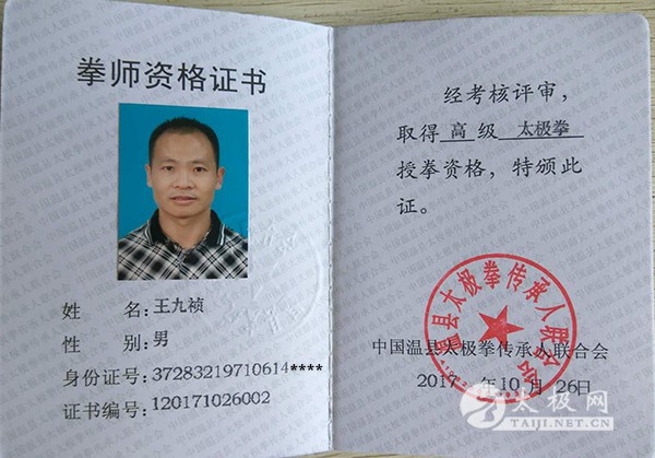 王九祯,1971年生于山东省临沂市,本科学历,自幼酷爱武术曾经学习过燕青拳、六合拳、四门拳等。自2007年有幸结识了陈式太极拳嫡宗传人陈瑜先生,一直刻苦练习陈式太极拳并于2009年5月正式拜在陈瑜先生门下,经师父多年的审核考察最终成为陈瑜先生的一名入室弟子,在师父的谆谆教诲和督导下近年来取得了一些荣誉;2012年取的了国家武术二级裁判员资格证;2013年国际武术交流大会中获得65kg级男子组太极推手比赛第一名;2015年被国际武术文化交流大会组委会特聘为推手现场裁判员。 |