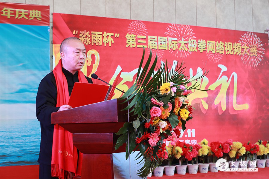 太极网创始人、温县太极拳传承人联合会主席刘洪奇先生致辞 11月4日,第三届国际太极拳网络视频大赛颁奖典礼暨太极网二十周年庆典于太极拳发源地温县陈家沟盛大召开。盛典以“网罗江湖最美太极人·缘聚古温寻根发源地”为主题,来自全国各地的国际太极拳网络视频大赛参赛选手及各流派太极拳名家近400人欢聚陈家沟太极拳文化国际交流中心共襄盛会。 活动现场 “国际太极拳网络视频大赛”是由太极网发起的全球性太极拳网络赛事,被誉为“永不落幕的国际太极拳大赛”。参赛者将练拳视频上传到太极网网络平台,接受专家的评审和广大网民投票,最终决出“最美太极人”、“最美太极团队”等奖项。该项赛事从2015年开始举办,每年一届,本届大赛参赛人数600余人,711部作品,七天展播创造了2700余万次网络访问量,230余万次点赞。 大赛组委会主任刘洪奇表示,国际太极拳网络视频大赛视频大赛依托太极网全媒体平台举行,由选手线上报名、线下录制参赛视频、在线展播、在线投票、专家评审等环节组成,历经数月的努力。太极网始于1997全媒体全产业引领太极,引爆2017大拳师大平台全球共享!太极网二十年风雨兼程,感谢一直以来对太极网发展给予关心和支持的各级领导以及诸多名师名家和太极拳爱好者。同时再次向百忙之中赶来参会的领导和太极名家以及社会各界人士表示衷心的感谢。 本次大会上设立一个特别环节,太极网和温县太极拳传承人联合会为陈式太极拳第十一代传人、现年93岁高龄的陈全忠大师颁发终身成就奖,表彰其为太极拳传播和发展做出了卓越的贡献。 同一太极吴颖锋老师作为大赛专家评委、薛奇英老师作为特邀嘉宾出席本次活动,并为获“最美太极人”一等奖选手颁奖。在当晚举办的名家表演中,吴颖锋、薛奇英老师联袂上场展示陈式太极拳。 责任编辑:太极网安安 |