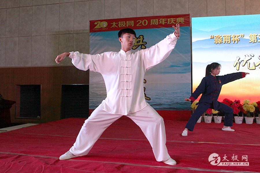 (太极网报道)2017年11月4日,第三届国际太极拳网络视频大赛颁奖典礼暨太极网二十周年庆典于太极拳发源地温县陈家沟盛大召开,来自全国各地的国际太极拳网络视频大赛参赛选手及各流派太极拳名家近400人欢聚陈家沟太极拳文化国际交流中心,共襄盛会。为了充分展示本次视频大赛参赛选手的风采,大赛组委会组织各项目获奖选手进行展演,精彩的表演令人大饱眼福,这也是参赛选手们为本次颁奖盛典暨太极网二十周年庆典活动送上的诚挚祝福。 东武太极张晓力稳步如松 银川尚加莉老当益壮 各项目获奖选手纷纷登台献艺,精彩的表演赢得了现场观众经久不息的掌声,在太极拳发源地的舞台上交流和展示各流派太极拳魅力。视频大赛连续举办了三届,参赛选手的水平不断提升,这也证明了太极拳近年来蓬勃发展的势头以及不可阻挡发展趋势。 吉林付明友淡然自若 山西王素成刀若惊鸿 国际太极拳网络视频大赛组委会主任刘洪奇表示,选手们的精彩表演令人印象深刻,对于广大太极拳爱好者对视频大赛的支持和热情参与表示感谢,并决心将视频大赛坚持办下去,办成太极拳品牌赛事,为太极拳推广传播插上互联网的翅膀,让越来越多的人能够参与进来,从而更好的习练太极拳,提升太极拳水准,进一步促进太极拳文化产业生态圈的发展壮大。 郑铁红云王雨剑挑霓虹万丈风 雷小华动若脱兔惊雷鸣 杨拳巾帼郭汉英拳动风云 陈小芹剑锋所指所向披靡 程晓娜剑花飞舞倾芸芸 李二军腾空一跃尽显太极无穷劲力 张玉洁轻舒身架满是太极韵味 王朝珍、姜正礼太极情深 双人武剑动乾坤 王旭望动静间诠释阴阳造化 马虹支系精英传人张赵保登台献艺 杨峰武动太极神采奕奕 韩鹏辉少年英才一招一式闪耀太极华彩 李二军任凡世吵杂 我自有太极一片天地 单东润形如电 疾如风 刚劲有力虎虎生风 邓美玉拳动陈家沟 一展太极英姿 陈丽剑峰披靡 演绎不老神话 黄锦锡立身中正 自有一番太极神韵 段建星拳动如风 一招一式尽显太极风采 李全喜手按阴阳 演绎最美太极 赖春荣进退间从容自若 呼吸间和合阴阳 刘延令捧一腔热血 暖太极之心 王晨霞武式太极拳表演震动全场 曹高立 关帝刀前太极人 忠义美名传四方 杨春碧轻武太极 诠释最美太极人 巩文霞登台展英姿 拳动陈家沟 李永增自广府而来 于陈家沟登台 拳归源 情归根 心归太极 郭东强虎虎生威 太极好儿郎 董宁迪指尖如玉 人美拳美 大美太极 李雪琴手持双扇武太极 美轮美奂 |