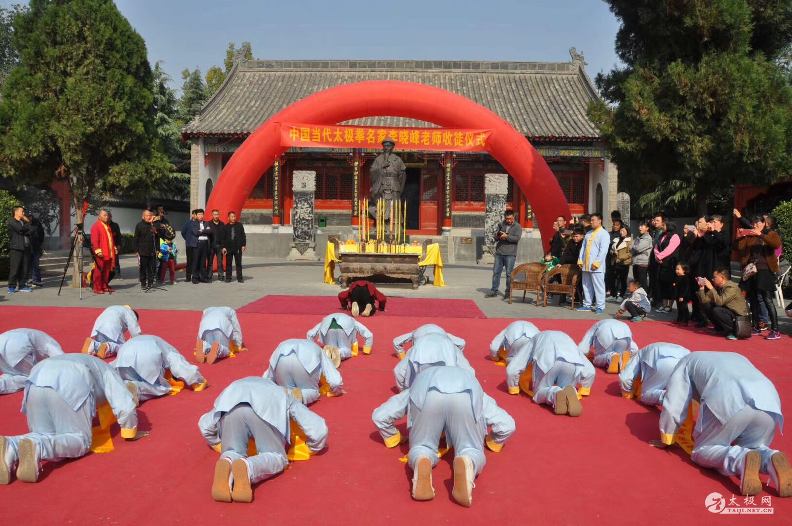 沁阳晓峰太极文武学校校长李晓峰收徒仪式 (太极网报道)11月4日上午,沁阳晓峰太极文武学校校长李晓峰老师的收徒仪式在温县陈家沟太极拳祖祠隆重举行,来自沁阳的20名太极拳爱好者拜入李晓峰老师门下,通过拜师仪式成为陈式太极拳传承人。 参加收徒仪式的嘉宾有来自沁阳市当地的领导及嘉宾,他们分别是:沁阳市体育局局长周向东、沁阳市长兴集团董事长史长兴、沁阳市智兴学校校长徐士文、沁阳市旅游局副局长张天峰、沁阳市武协秘书长薛磊、沁阳市武协副会长王应军、沁阳市武协副会长胡林、沁阳市公安局刑侦科主任陈根庆、沁阳市城管局主任黄毛义、沁阳市王召乡龙涧村党委书记刘水龙、沁阳市平安集团董事长冯平安等 来自温县的领导及嘉宾有:温县政协副主席严双军、温县赵堡镇镇长张兵、温县陈家沟书记陈景元、温县陈家沟景区副局长牛占文、任海林、温县陈家沟家族理事会陈景安、陈石岩、陈国胜、焦作市太极拳协会张喜欢、李晓峰老师的同门师兄弟等。 李晓峰携众学员表演 收徒仪式开始前,李晓峰老师带领学员为大家献上了太极剑、太极拳、春秋大刀等太极拳表演,赢得现场观众阵阵掌声。 仪式首先由沁阳市旅游局副局长张天峰发表致辞,张天峰表示今天有幸来到温县陈家沟参加李晓峰老师的收徒仪式,太极拳是我们中华武术的瑰宝,正是有了拜师收徒,才让我们的瑰宝传承下去。希望学员们能够努力刻苦,认真学拳,把太极文化在沁阳好好发展下去。最后再次向李晓峰收徒表示祝贺。 张天峰致辞 陈长虹宣读祭文 李晓峰的师父陈长虹老师宣读祭祖文。陈家沟陈氏族长陈景安先生和太极拳名家陈长虹老师先后祭拜先祖,随后李晓峰老师祭拜太极拳祖师,上香、敬酒、行跪拜礼。 新入门弟子依次上前递交拜师贴、行拜师礼,师父回帖并为弟子披挂绶带。最后,由师父李晓峰带领新入门弟子向师爷陈长虹行鞠躬礼、向太极拳始祖行跪拜礼。 李晓峰及弟子合影 师父训话环节,李晓峰老师告诫弟子:要遵守门规戒律、团结同门、刻苦练拳,承担起弘扬传播太极之责,希望弟子们认真学习太极拳技艺,为传播和弘扬太极拳文化作出自己应有的贡献。 李晓峰表示,收徒意味着自己传承和传播太极拳的责任更加艰巨,后续会更加严格要求自己以身作为传拳授道,并带领弟子共同为传承太极拳不懈努力。 李晓峰太极拳档案:李晓峰,现任沁阳晓峰太极文武学校校长兼总教练。陈式太极拳第十一代传人,全国武术太极拳锦标赛冠军,国家一级拳师、一级武术裁判、一级武术教练员,国际太极拳传播大使,中国武术六段。温县陈家沟武术院教练,泉州石狮武术协会教练,甘肃金昌武术协会副会长,沁阳武术协会副会长, 焦作太极中等专业学校客座教授。 责编:太极网陈超 |