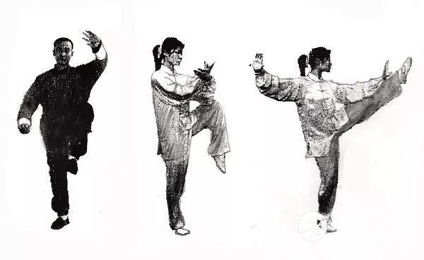 3.胯、膝、踝关节不能完全挺直,应保持似直未直、似弯非弯的自然竖直。 这样,腿部似乎是直立的,又有弹簧般的感觉,古太极拳经典拳谱所谓“五趾抓地上弯弓”之“上弯弓”就是这个意思。这种状态不仅有利于脚下劲力的上传,而且有利于全身重心的下降与调整,体重通过足弓的中央均匀分布到脚趾与脚跟,使身体重心垂直线准确地落在下支撑面的中心也就是足弓的中央(这个部位在武术语言中被称为“涌泉”)。如果脚、腿、胯完全挺直,要使身体重心垂线准确地落在下支撑面的中心往往就会有困难。 4.独立动作中身躯上升可以配合增加腹压的呼气 金鸡独立与分脚等拳式是弓步的前腿蹬直、身躯上升成为独立的拳式,在身躯上升时应该配合增加腹压的呼气,这样可以使身体重心下降,就会有如乘突然上升的电梯时身体往上升、重心往下沉的感觉,从而增加站立的沉稳度。 5.劲(气)从脚而起 无论是提膝还是分脚、蹬脚等,活动的腿脚与手臂不要主动用力,必须由着地脚的沉蹬支撑引起的向上传递的劲力通过腰骶部再传递到需要活动的腿脚与手臂,腿脚的提膝或踢蹬都应有一种从着地脚的脚底像抽丝样贯通到活动脚的末端与手臂的末端的感觉。