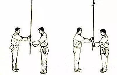 三、递械礼 (1)递刀礼:并步直立,左手托护手盘,右手托刀前身,使刀平横于胸前,刀刃向里,目视接刀者。 (2)递剑礼:并步直立,左手托护手盘,右手托剑前身,使剑横于胸前,剑尖朝右,目视接剑者。 (3)递棍礼:双手靠近握棍于把段(靠近棍把段约棍身1/3),左手在上,两臂屈圆,使棍竖于体前,棍梢端朝上,目视接棍者。 (4)递枪礼:双手握枪于把段处,左手在上,两臂屈圆,使枪垂直于体前,枪尖朝上,目视接枪者。 四、接械礼 (1)接刀礼:开步站立,左手掌心朝上托刀于递刀刃者两手之间,右手心朝下接握刀柄,目视右手接刀。 (2)接棍礼:并步直立,两手虎口朝上,上下靠拢,左手在上,靠近递棍者手下部接握,目视双手接棍。 (3)接枪礼:并步直立,两手虎口朝上,上下靠拢,左手在上,靠近递枪者手下部接握,目视双手接枪。 责任编辑:太极网安安 |
