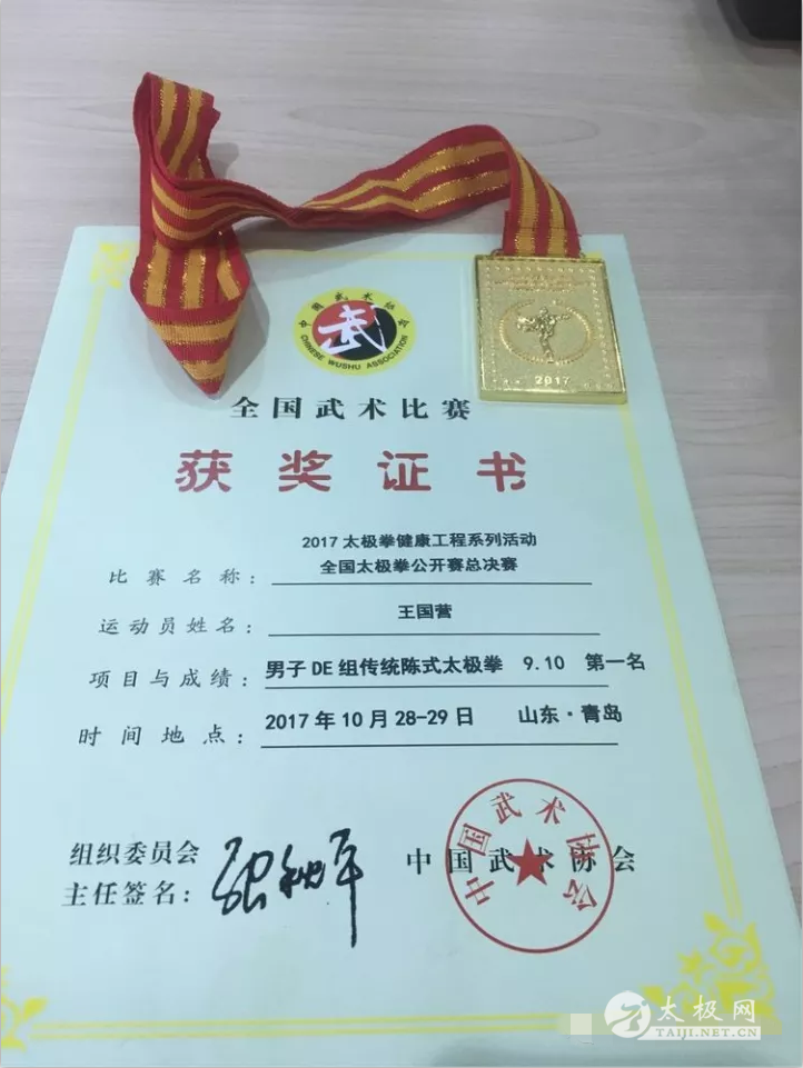 (太极网报道)10月26日至29日,由国家体育总局武术运动管理中心举办的2017年太极拳健康工程系列活动全国太极拳公开赛总决赛在青岛举行,来自全国各地的80多支队伍约500多名运动员参加了此次盛会。易合(明道)太极拳馆馆长兼总教练王国营老师获得男子传统陈式太极拳冠军。 这是王国营老师继获得第十三届运动会群众比赛暨2017年太极拳健康工程系列活动太极拳公开赛武当山分赛区一等奖取得总决赛参赛资格后,又一次代表家乡太极拳发源地河南温县参赛。他十分重视此次比赛,针对竞赛规程赛前积极备战,认真训练,从细节入手,充分做好准备,在赛场上赛出风格赛出水平,展现了太极拳发源地的精神风貌与技术水平,为家乡取得了男子DE组陈式传统太极拳项目的第一名。 王国营老师表示,虽然自己的许多弟子都已经取得了国际比赛的金牌,自己还依然驰骋在赛场有时候还与弟子们同台竞技,并不是想证明自己可以取得金牌、冠军,而是要通过比赛督促自己不懈练功,通过比赛发现自己的不足,和其他优秀运动员互相交流,并且有更多的机会向各位老师前辈讨教学习。 责任编辑:太极网小丹 |