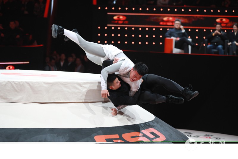 功守道承载着向全球传播中国太极文化的愿景和使命,更是一场太极的竞技。揭幕战中, 10名功守道运动员进行5场正式较量,每场三个回合决出胜负。擂台上,身穿黑白比赛服的功守道运动员,首先拱手行礼,然后在活步推手技术上展开攻防。近身对抗中体现出太极沾、连、粘的特色,以採、挒、肘、靠的技法,将对手打倒在地或者打下擂台;运动员刚柔并济的动作中无不体现着力量与技巧,比赛节奏紧张,一场以太极为主元素的竞技扣人心弦。