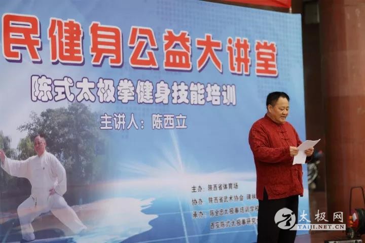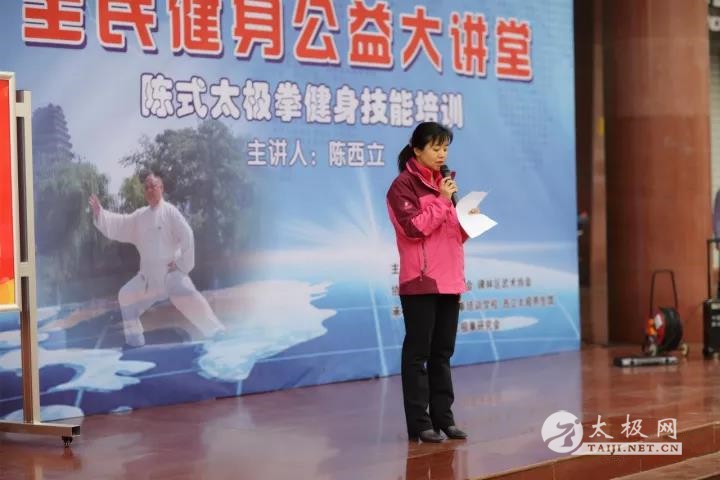 (太极网报道)为贯彻落实国家体育总局关于武术要“进学校、进社区、进乡镇、进企业、进机关、进军营”的“武术六进”要求,推进全民健身,弘扬中华民族传统文化。由陕西省体育场主办,陕西省武术协会、碑林区武术协会协办,西安陈全忠太极拳培训学校、西安西立太极馆、西安陈氏太极拳研究会承办的“2017全民健身公益大讲堂”,昨天在省体育场西门广场如约举行。 主持人张玉洁 陈西立致辞 陈西立老师由《黄帝内经》入手,通过古人的养生智慧,结合陈式太极拳功法,讲解陈式太极拳的养生作用。 陈西立老师给大家现场教学、指导 陈西立带领陈全忠太极拳学校的教练和会员为大家带来的集体陈式太极表演,本节目在今年“三亚南山第二届太极文化节”的比赛中获得集体项目第二名的优异成绩。 陈斌老师现场回答武术爱好者提问 讲座获得了在场太极拳爱好者的一致好评,西安陈全忠太极拳培训学校、西安西立太极馆也将在今后的日子里继续为优秀传统武术的传播,尽自己的一份力量。 本站编辑:太极网陈超 |
