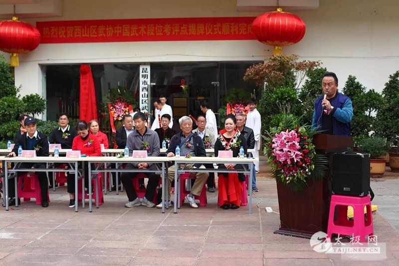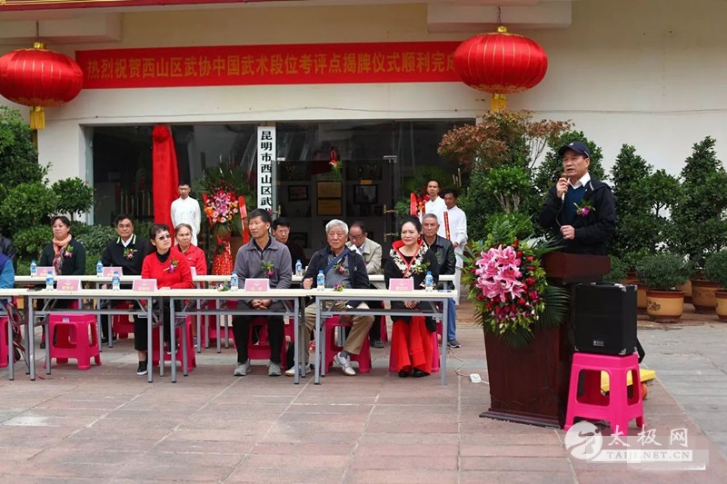 (太极网报道)2017年11月18日上午10时《昆明市西山区武术协会中国武术段位考评点》在金马碧鸡坊陈家沟太极拳协会云南总会隆重举行。 云南省武术协会主席胡宝林、陈家沟太极拳协会云南总会会长曾加华共同为考评点揭牌。 胡宝林 曾加华揭牌 出席揭牌仪式的领导和嘉宾有:云南省武术协会主席胡宝林,云南省武术协会副主席沙俊杰(云南省沙国政武术馆馆长),云南省武术协会曾亦涵副秘书长,云南省沙国政武术馆李斌副馆长,云南省武术协会办公室邵胜玲老师,中山武术院、昆明市西山区武术协会段位考评点副主任杜荣,中山武术院蔡崇荣老师,云南省武术协会产业开发部钟文辉主任,云南省陈氏太极拳研究会李寿明秘书长(陈家沟太极拳协会云南总会名誉会长),云南省陈氏太极拳研究会李锡森会长,西山区碧鸡辅导站钟志明老师,云南昆钢辅导站张祖祜站长,云南民间武术联合促进会周新翔秘书长,陈家沟太极拳协会云南总会名誉会长马站兴,陈家沟太极拳协会云南总会副会长、昆明市官渡古镇吉勇书记(主任),陈家沟太极拳协会云南总会桂镜璞秘书长,云南武协领导、武林前辈等。 陈家沟太极拳协会云南总会长、昆明市西山区武术协会会长、昆明市西山区武术协会中国武术段位考评点曾加华主任为揭牌仪式致辞,对前来参加活动的领导及嘉宾表示欢迎和感谢。 胡宝林 沙俊杰 李寿明 曾加华 云南省武术协会胡宝林主席、云南省武术协会沙俊杰副主席(云南省沙国武术馆馆长)、云南省陈氏太极拳研究会李寿明秘书长,做了重要讲话,对昆明市西山区武术协会以往的工作成绩进行了肯定,对开展武术段位工作提出了要求,并对昆明市西山区武术协会中国武术段位考评点揭牌仪式表示祝贺。 揭牌仪式的举行标志着昆明市西山区武术协会揭开了新的篇章,为喜好中国武术、希望学习中国武术来提高个人身体素质和健康水平的市民,提供学习正宗陈氏太极拳的机会,更通过武术段位制标准化管理体系的组织网络,为大家带来系统的武术专业服务。 舞狮表演 精彩纷呈 嘉宾胡宝林为雄狮“点睛” 嘉宾沙俊杰为雄狮“点睛” 合影 责任编辑:太极网小丹 |