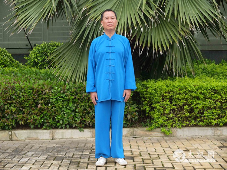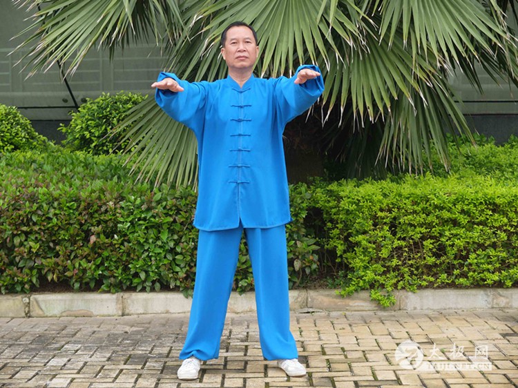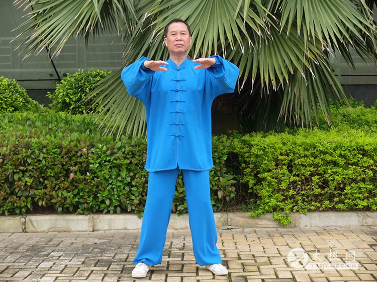 我的恩师林墨根先生说:“不要小看‘起式’动作简单,其要领贯穿于整套拳架的松柔与松沉之中。” 他老人家还在《太极》杂志发表了《欲精深功夫须熟练起式》的好文章呢!林师在该文谈到“起式”说:“太极第一式不可轻视,太极第一式不可一日不练。”“起式”亦有部分拳师称为“起势”,杨氏太极拳名家李雅轩先生在《杨氏太极拳诠真》书中是“起势”的叫法,如从字义内涵考究,“式”和“势”的实质有所差别,我认为“起势”的称谓较为准确一点。“松柔”与“松沉”的功夫是练习太极拳的入门功夫,练到位的“起势”,对行拳走架而言,“松柔”、“松沉”加上“虚实变换”、“上下相随”、“内外相合”在“起势”中出来了,这样有利于打拳开好局。 有位老练家喻“起势”乃太极拳架之母,确实言之有理。有些拳师这样说:“起势难。”说难不是说动作的姿势难,而是说起势没有动力源,因为太极拳的动,不能是自己的动,也就是说不能是配合的动。因为在“起势”之前没有动力源,此时手臂、胳膊是抬不起来的,抬起来了就是人为的乱动,应该是用松沉至脚底的地面反座弹力和腰力启动多少就动多少,少动一点是不到头,多动一点就是过,就是妄动。太极拳要求“其根在脚,发于腿,主宰于腰,形于手指,由脚而腿而腰,总须完整一气,向前退后,乃得机得势,有不得机得处,身便散乱,其病必于腰腿求之,上下前后左右皆然。”欲在手上有内劲要从腰腿脚下求,一点有劲全身求。即所谓求周身一家的“整体劲”。如具有整体劲,在起势中就能体悟到。下面以杨氏太极拳115式大架为例介绍“起势”的练法: 一、初始姿势是虚领顶劲、松腰塌胯、松肩垂手的拳架第1式“预备势”,头颈竖直松开上领,下颌略向后收,两眼向前平视,两手分别置于大腿外侧,中指贴着风市穴,脚底承重七成在脚跟、三成在脚掌。 二、“起势”两臂未举之前,在犹如温暖水流意念的带领下,缓慢从上往下松沉,温水流至哪里,就放松到身体哪个部位。依次顺序是:松头顶、松脸部、松颈部、松双肩、松胸膛、松腰背、松腹部、松腹股沟、松臀部、松大腿、松膝部、松小腿、松踝关节、松脚背、松脚跟、松涌泉穴、松脚趾。比如:意念温水流至脸部,脸部就放松,开心微笑有利于放松哦!随着松开的身势下沉,腿膝脚处亦相应微曲(老练家亦称圆膝),松沉至脚底就身势立稳了,脚底承重还是七成在脚跟、三成在脚掌。站过“开立步桩”的太极拳爱好者知道,此时的“起势”有如 “开立步桩” 沉顶对拔劲行功的一组动作,这是“起势”和 “开立步桩”合一的体现之一。 三、虚心实腹、松肩垂肘、松腰塌胯的沉至脚底之后,大脚趾和二脚趾恰到好处的稍微抓地,提肛收腹吸气(提肛收腹是内收,是收到命门穴上,不是收到胸肺部位)。 太极拳初学者可以跨过这步暂不用练 ,因为用呼吸配合动作不当有可能带来不安舒,宜自然过渡到拳势的上下相随和内外相合。 四、通过松腰和胯根恰到好处的往后松来转换脚底吃劲点,脚底承重改为四成在脚跟、六成在脚掌,这是“起势”内在虚实变换的环节。松腰塌胯、开胯挺膝、松肩滚臂(注意放松腋窝,如腋窝不松,肩则难松。)的从脚底顺着地面反座弹力和腰脊往上松去的劲力缓慢撑起身体,同时带动两手均匀的向上抬起(手心向下),是一个两臂掤挑之势,两手之距稍宽于肩。两手向上抬起时要意念胳膊用劲,练到位时有手臂较为沉重的感觉,同时手指松开朝前伸、腰背向后松。身势撑起时要意念脚底、小腿、大腿、臀部、腰背、颈后、脑后节节贯穿的往上松去。手随势而起,膝盖伸直时,双臂的抬起也举至合适的高度了,就是两手之高平肩或稍高于肩。动作协调了,就能体悟到“上下相随”的技术内涵。 五、松腰、含胸拔背的带动两手小臂环状收回,注意放松肘关节。如果未能松开肘关节,含胸拔背之势是不能带动两手小臂环状收回的。同时通过松腰和胯根恰到好处的往前松来转换脚底吃劲点,脚底承重改为七成在脚跟、三成在脚掌,这也是“起势”内在虚实变换的环节。 六、沉肩坠肘带动两手往外分开,略宽于肩,手掌心好象降落伞那样准备随风吹落下来。在犹如温暖水流意念的带领下,缓慢从上往下松沉,温水流至哪里,就放松到身体哪个部位。依次顺序是:松头顶、松脸部、松颈部、松双肩、松胸膛、松腰背、松腹部、松腹股沟、松臀部、松大腿、松膝部、松小腿、松踝关节、松脚背、松脚跟、松涌泉穴、松脚趾。比如:意念温水流至膝部,膝部就放松,吃劲处放在膝后膝腘(俗称膝窝)处才能使膝盖前面松开哦!这是杨家太极拳劲走阴面的练法。随着松开的身势下沉,腰胯往下松沉多少,膝就相应圆弯多少,松沉至脚底就身势立稳了,此时“起势”的脚底承重还是在七成在脚跟、三成在脚掌。手随着身体的松沉之势而落下,身势下沉一点,松开肩关节随沉势下落一点;身势又下沉一点,松开肘关节又随沉势下落一点;身势又再下沉一点,松开腕关节再下落一点;直至身势松沉到脚底,胳膊至手指也随沉势松尽落尽,最后意念中指点到地面(这样使垂手的节节贯串放松更为到位),上下肢放松到位了。命门穴要尽量饱满,意气自天入地,从百会穴到涌泉穴上下一气贯通。值得注意的是,掌指不宜跑气,练拳行功之气,意念固在手掌劳宫穴(如何固法宜言传身教)较好,两手有气贯十