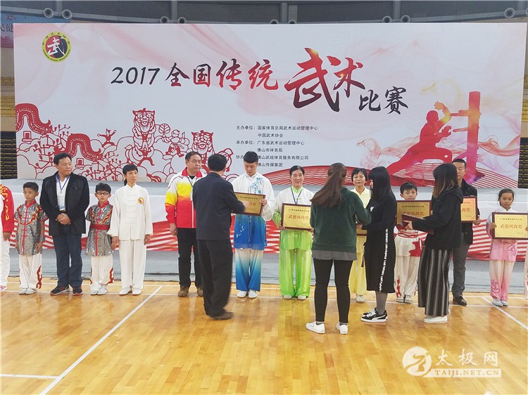(太极网报道)由国家体育总局武术管理中心和中国武术协会主办的,2017年全国传统武术比赛,经过3天的比赛,于11月28日在佛山岭南明珠体育馆落幕,陈志强太极拳馆组织顺德和广州两馆40人参赛。 其中广州陈志强太极拳馆30人参赛,以老带新,有久经沙场,有初出茅庐,赛场上都展示了自己的水平。最后广州馆获得个人金牌14枚、银牌24枚、铜牌13枚,集体太极剑二等奖,拳馆获得武德风尚奖运动队。 |