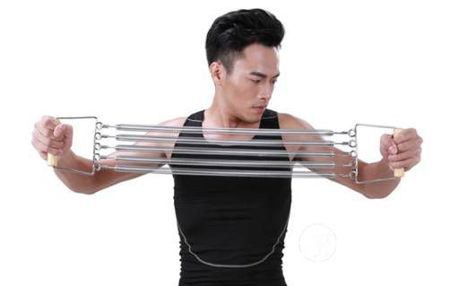 一、像拉簧两头逆向对拉或相向收合的对称关系 每逢一式做完接做下一个动作时,多是腰椎命门松沉后撑,而主要一手却是顺着原伸展的余势继续松伸,进行折叠,使腰手之间的距离拉大,有逆向对拔拉长的感觉。主手若是向上伸,腰部必定向下沉。 如四十二式太极拳套路(下同)做完”白鹤亮翅”接做“搂膝拗步”时的折叠:主手若是向前伸,腰部必定向后撑,如做完”左搂膝拗步”接做“右搂膝拗步”时的折叠;主手前伸若偏左,腰部后撑必偏右(肾),如做完“右搂膝拗步”接做“撇身捶”时的折叠:主手前伸若偏下,腰部后撑必含上,如做完 “进步栽捶”接做”斜飞势”时的折叠。不管主手向什么方向伸展,腰部总是向相反的方向撑开,使腰、背、肩、臂、手,节节贯通,像一条可伸缩的弹簧对拔拉长。 在腰手对拉之中,主手边伸展边孕育着下一个动作走向,当余势走够之时,即按下一个动作的走向要求画弧松收,撑开的腰弓同时松回到下一动作的要求,腰与手之间距离拉近,像拉长的弹簧慢慢松回到未被拉伸时的自然状态。 主要一手,就是能领起周身运动的那只手,不论它向何方运动,总有与之相反的暗力支撑着。这暗力可以是另一只手,也可以是脚,但起主宰作用的总是腰。腰与手的对称是全身各种对称关系的主体,是太极拳运动内在质量的重要保证,具有广泛的意义。 腰手对拉,虽然常见于两式之间的折叠转换,但也广含在所有动作之中,有的还相当明显。如“起势”两手前平举时,腰部同时下沉后撑,就属过渡性对拉:“提手”完成时,右手上挑前送,腰则下沉后撑,就属定势性对拉。