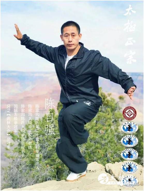 陈自强 陈家沟陈氏第二十世太极拳嫡宗传人 陈家沟太极拳学校总教练 陈家沟陈氏太极拳协会秘书长 世界太极拳联谊会秘书长 国际太极拳冠军 CCTV【武林大会】总冠军 陈自强,男,1977年出生于“太极拳发源地”河南温县陈家沟太极拳世家,陈家沟陈氏第二十世太极拳嫡宗传人,自幼随父亲“陈家沟陈氏第十九世太极拳守门人”陈小星习练家传拳械,并得到二伯父“陈家沟陈氏第十九世太极拳掌门人”陈小旺的悉心指导,加之聪颖刻苦,勤于钻研,不仅擅长陈氏太极拳套路,以及各种器械,对太极拳推手、太极散手颇为谙熟,动作弹抖靠发、迅猛冷脆,功夫极具威力。 自1998年在陈家沟太极拳学校任教至今,多次率领陈家沟与陈家沟太极拳学校两支代表队,参加全国各项比赛,均取得了优异成绩,硕果累累。多次接待前来陈家沟参观、学习的国内外武术爱好者,进行切磋交流,还长年大力推动陈氏太极拳的海外传拳活动,被海内外众多媒体采访报道。其待人真诚,为人直爽,因人而异的教学方法受到了大家的一致称赞,为弘扬陈氏太极拳,为太极拳的发展和走向世界作出了杰出贡献。
