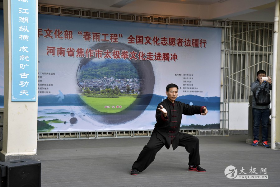 (太极网报道)近日,陈家沟国际太极院院长陈炳、温县和式太极拳学院院长和有禄以志愿者的身份参加了中国文化部、中央文明办共同组织的“春雨工程”全国文化志愿者边疆行活动。参加本次活动的还有陈家沟太极拳协会云南总会会长曾加华以及陈家沟太极拳协会云南腾冲分会会长番再国等。 活动过程中,陈炳、和有禄、曾加华、番再国等几位老师先后登场为腾冲当地近400人次分别进行了陈式太极拳基本十三式以及和式太极拳的教学,学员们纷纷表示受益匪浅,感谢诸位老师们的辛苦付出。 |