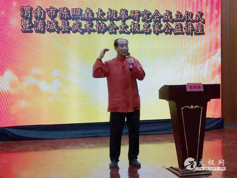 (太极网报道)12月22日,渭南市陈照森太极拳研究会成立仪式暨太极名家陈照森公益课培训班在蒲城县盛鑫温泉酒店隆重进行。 太极拳大师陈照森、陈照森太极拳研究会会长王运宜、陈家沟太极拳功夫学校副校长陈志伟、渭南市武术协会领导、蒲城县体育运动中心主任张文清、蒲城县政府研究室主任体改办主任杜红格、蒲城县原林业局局长张西岳、白水县武术协会会长高斌、蒲城县武术协会会长陈平及相关县区武术协会的领导、太极拳爱好者共100多人一起参与了这一具有历史意义的时刻。 会上,蒲城县武术协会会长陈平致欢迎辞,渭南市武术协会副会长杜溪涓宣布成立太极拳研究会批复,蒲城县体育中心主任张文清与陈照森大师共同揭牌,白水县武术协会会长、渭南市陈照森研究会会长高斌做表态发言,陈照森太极拳研究会会长王运宜、蒲城县体育中心主任张文清也分别做了讲话。 陈照森讲话 仪式结束后,陈照森大师讲授太极拳公益课,并对正面缠丝、无极桩、单招实战演练、五种太极拳推手进行集中2天时间的重点培训。 陈照森授课 陈照森大师出生于太极拳世家,系陈家沟陈氏第十九世、陈式太极拳第十一代传人,西北拳社第五代掌门,其功夫纯正、品德高尚,素有“当代关公”、“大刀王”之美誉 。1979年开始应邀在国内外授拳,1983-2000年陈家沟太极拳学校任主教练、校长等职,近三十年来,为社会培养了1000余名太极拳冠军和优秀教练员,同时形成了一整套因材施教、快速提高拳技的教学方案,并支持在全国各地陆续成立陈照森太极拳研究会,开展太极拳公益讲座活动。渭南市陈照森太极拳研究会的成立就是将这种高超的拳技很快在渭南大地得到普及推广,为广大太极拳爱好者带来福音,提供平台和技术支撑,让人们在享受新时代美好新生活中不断增加获得感。 本站编辑:太极网陈超 |