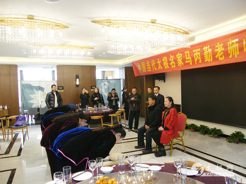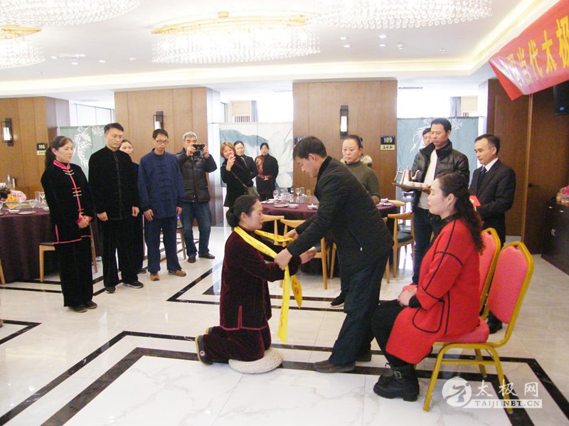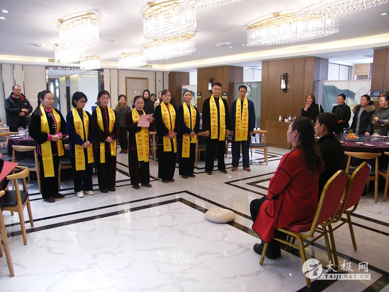 (太极网报道)2017年12月31日,陈氏太极拳第十二代传承人马丙勤收徒仪式于开封市宋城路1号五味和大酒店隆重举行,本次共有张玉萍、马继红、杨艳莉、王冬、高晓灵、张书贵、邢珂、常兴隆等八名优秀的太极拳爱好者拜入马丙勤老师门下。 新入门弟子 龙亭区人社局局长卓继伟主持活动并致迎宾欢迎词。新入门弟子上前向师父、师母行鞠躬礼,师父亲自为弟子披挂中华太极拳传承人绶带。随后,新入门弟子依次向师父师母递交拜师贴、行拜师礼、敬拜师茶。 拜师仪式 马丙勤老师向新入门弟子训话,希望他们能够恪守门规祖训,认真习练太极拳,用心体悟太极文化,时刻秉持太极拳传承人的风骨,发扬马虹精神,为太极拳的推广和传播做出积极的贡献。新入门弟子代表张玉萍发言,她代表全体新入门弟子表示定当遵循师父教诲,练好太极拳,做好太极人,不辜负师父的信任,将马虹精神发扬光大,为太极拳的传播和推广不懈努力。开封市教育局副局长张海英作为嘉宾代表发表讲话,她首先向马丙勤老师表示祝贺,并充分肯定了马丙勤老师多年来为太极拳的传播和推广所作出的积极贡献,希望各位弟子珍惜这份机缘,在马老师的教导下,早日学业有成,早日为本门增光添彩! 马丙勤训话 新入门弟子代表张玉萍发言 张海英讲话 新入门弟子与师父师母合影 现场合影 马丙勤老师向参加今天收徒仪式的嘉宾及领导表示感谢,同时他表示自己将会继续致力于太极拳的推广传播,为弘扬太极文化,推动太极拳事业发展培养出更多更好的人才。 责任编辑:太极网陈超 |
