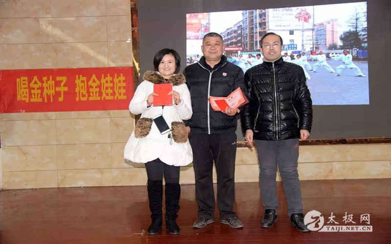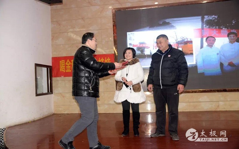(太极网报道)12月30日下午5点,涡阳有则陈氏太极拳研究会在“江南名景大酒店”黄山厅举办2018新年联欢会。据悉,此次联欢会由刘磊会长发起组织策划,全体会员积极响应,热情参与,兄弟协会助力演出,联欢会取得圆满成功。 新年联欢会现场气氛热烈 左金杰副会长给积极进步奖获奖者张春楠颁奖。 蒿广钦秘书长给2017年焦作国际太极拳交流大赛获奖者高晔(铜牌二枚)、张春芳(铜牌一枚)颁奖。 杨慧玲副会长给2017年焦作国际太极拳大赛获奖者左金杰(银牌一枚)颁奖。 杨慧玲副会长给2017年焦作国际太极拳交流大赛获奖者刘磊会长(铜牌一枚)颁奖。 刘磊会长给榜样奖获奖者王克敏、杨慧玲、张秀荣颁奖。 自驾e族安徽总会亳州分会版主许丽致贺词 刘磊会长作涡阳有则陈氏太极拳研究会2017年年度总结报告。 福建省浦城县太极拳协会会长、陈有则大师得意弟子袁凌先生及夫人应邀专程赶来参加新年联欢会。 新春联欢会进行了精彩文艺演出及太极拳等表演。 一场丰富多彩的视觉盛宴展现在大家面前,应邀嘉宾与研究会全体会员一起观看了这场演出,演出节目丰富多彩,形式多样,满满的正能量。 蒿广钦秘书长赋诗一首: 新年晚会成功办, 兄弟姐妹皆欢颜。 盛宴散后不忍离, 再聚须等一整年。 方睿会员赋诗两首: (一) 江南名景乐欢腾, 霓虹闪烁歌抒情。 觥筹交错佳肴美, 举杯同庆新年迎。 尊古拳友喜相逢, 自娱自乐话友情。 国粹太极修身性, 健康快乐享太平。 (二) 太极同仁大联欢, 歌舞拳艺不一般。 意犹未尽仍亢奋, 今晚好似过大年。 李娜会员赋诗一首: 年会庆典精心办, 刘磊金杰辛苦啦。 金鸣婚庆好主持, 老师朗诵才华展。 有则太极研究会, 老子故里美名传。 本站编辑:太极网陈超 |