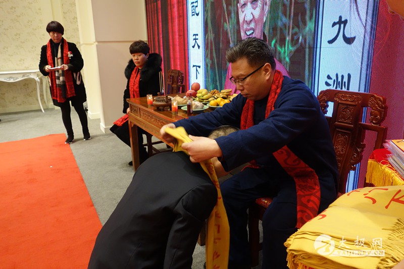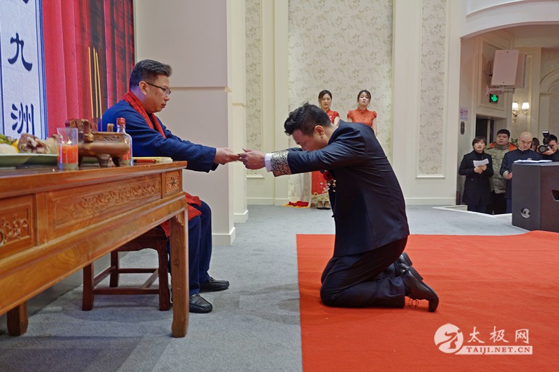 (太极网报道)2017年12月31日,星太极(上海)养生文化馆经过数月的精心筹备,在2017年辞旧迎新的最后一天耀世开业! 12月31日上午8:58分。伴随着舞狮队气势磅礴的鼓声以及精彩的舞狮表演,2017星太极(上海)养生文化馆开业仪式正式开始了,远方的汽笛声一声高过一声,尊古号火车缓缓停靠在了星太极站,预示着尊古门的传承,正式到达了星太极!车门开启,今天的重量级来宾在星太极(上海)养生文化馆馆长郭杰,陈君荣先生以及星太极众弟子的列队欢迎下,缓缓走下火车。 先下车的,是尊古门一脉的长辈们,他们是太极名家陈有则、陈有京、陈有华、陈有强、米广胜、姜启健、郜森、赵乐意、王国营、梁文成、王语录、谢礼德、吉国军等,尊古太极国际联合会秘书长徐新春、上海合纵太极拳健身馆馆长郭小华、上海弘道太极费琳宝、惠州尊古太极馆馆长许银坤、瑞安尊古太极拳馆馆长王辉、瑞安有华太极拳俱乐部王晓东等众位尊古门人步履轩昂,气势非凡,预示着星太极(上海)养生文化馆的太极传承有章可循,有理可依。 太极网作为尊古太极门的长期战略合作伙伴应邀出席助阵,太极网创始人、温县太极拳传承人联合会主席刘洪奇携伉俪河南太极国际旅行社总经理张惠芳出席活动。 随后步下火车的,便是老将军代表:中央军委海军政治部原主任 毕惠义中将,海军航空兵原副司令 刘文清少将,南京军区空军原副参谋长 齐路通少将,解放军第二军医大学政治部原主任 田仕明少将,海军福建基地原政委 刘阁忠少将,解放军南京政治学院政治部原主任 怀耀生少将,兰州军区空军政治部原副主任 杨位环少将,海军舟山基地原副政委 蔡仲良少将,上警备区原副政委 张维平少将,空军上海基地原政委 李文福少将。他们的到来,使星太极(上海)养生会馆的开业仪式,平添了一份尊贵与正气! 陈有华 星太极馆长郭杰致辞 在开业典礼上,星太极(上海)养生会馆馆长郭杰作了热情洋溢的致辞,向参加开业盛典的各位贵宾和工作人员表达了诚挚的谢意,海军福建基地原政委 刘阁忠少将也为星太极致辞,对星太极的诞生表达了热烈的祝贺。 剪彩仪式 随后,尊古太极国际联合会主席、温县庆州武院院长陈有华先生,星太极(上海)养生文化馆馆长郭杰,陈君荣先生以及海军福建基地原政委 刘阁忠少将为星太极(上海)养生文化馆剪彩揭牌。 至此,星太极(上海)养生文化馆开业剪彩仪式环节圆满礼成。随后一行人移步壹站会馆,参加星太极(上海)养生文化馆馆长郭杰之师、太极名家陈有华老师的收徒仪式。 陈有华夫妇 黄炳尧、钟水荣、叶先明、钟林辉、牟千里、齐福民、姚振、张亚斌等八人作为陈氏太极拳第十三代准弟子,太极网创始人、中华太极拳传承谱系编委会主任刘洪奇先生作为见证人。准弟子向师父师娘敬茶,递拜师帖,行三拜九叩之礼,由陈有华师父授予绶带及中华太极拳传承人证书。 陈君荣发言 此次拜师仪式介绍人陈君荣系陈有华二弟子,他在发言中饱含深情祝贺师父以及新入门的弟子,希望大家齐心协力传播太极。 陈有则致辞 太极名家陈有则在致辞中向其四弟陈有华喜收新徒表示热烈祝贺,同时代表尊古门欢迎新加入的“家人们”。 海军福建基地原政委刘阁忠少将讲话 海军福建基地原政委刘阁忠少将压轴讲话,他向上海星太极的成立以及尊古门再添新力量表示热烈祝贺,盛赞陈有华老师是优秀的太极文化传播者,刘阁忠少将表示,太极拳作为中华优秀传统文化的杰出代表载体让广大群众受益,传播健康、传播文明、传播正能量,是值得大家共同努力推广的,为社会积极做贡献。 郭杰率师兄弟答谢 陈有华大弟子、星太极(上海)养生文化馆馆长郭杰作为代表向与会嘉宾致谢。“礼成”!随着主持人的庄重的宣读,陈有华老师门下又添新丁,尊古一脉人丁愈加兴旺,如此喜事,应传为当世佳话。 收徒仪式 新入门弟子与师父师母合影 随后的午宴,陈有华次子、全国武术锦标赛冠军陈跃天,上海星太极馆长郭杰,太极名家陈有强,尊古太极国际联合会主席、温县庆州武院院长陈有华等尊古门人,从年少,到年长,老中青三代纷纷登台献艺,如此难得且珍贵的舞台,更是体现出尊古一脉人丁兴旺,衣钵后继有人的盛况,使得当日星光熠熠,午宴会堂蓬荜生辉。 现场表演