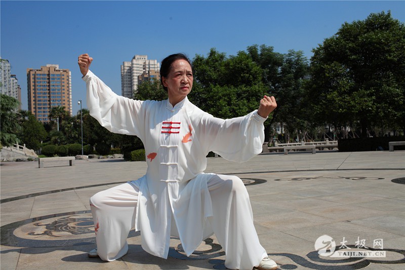 陈丽 生于太极世家,长在动荡年月,心怀太极梦想,怎奈家族代有传男不传女之古训。即便诸多困阻,终是抵挡不住对太极拳的热爱,于是便趁父亲教拳授课时偷偷在一旁学拳,虽不尽得,却也能偷的一招半式,每每于四下无人时独自揣摩,反复练习。因为得来不易,她倍加珍惜,每学会一个招式都视若珍宝。正是这种把太极拳作为此生最宝贵之物的感情才成就了如今的“最美太极人”陈丽。 陈丽与父亲陈全忠大师 虽然未能从小系统的习练太极拳,但自幼练舞积累的扎实基本功让陈丽练起太极拳来得心应手,陈丽的父亲国际太极拳大师陈全忠见其如此聪颖且又天赋极佳,也终于愿意教授她,还总夸她悟性高“拳打的漂亮。在父亲的指导下,陈丽的太极拳进境很快,70年到宝鸡铁路分局上班,每周末回来跟父亲学拳,也和西鹏、西立二个弟弟切磋拳技。就这样,陈丽一边工作,一边练拳,也会在单位教身边的同事练一练,不断提升自身的太极拳技艺,磨练太极拳技法,深入了解太极拳拳法内涵。 陈丽 91年回调西安铁路局,有了更多的时间在父亲身边接受更系统的太极拳训练,也亲眼看到了父亲为传承和发展太极拳事业的辛苦付出以及他对太极拳那种深深的热爱,父亲的这种精神让陈丽感到震撼,她也因此跟随父亲走上了传播太极拳的道路,正式开始公益授拳。陈丽经过长时间的研究,将传统武术、形体、舞蹈有机结合,自成一体的热身及拳后发松得到了广大拳友的一致认可。 陈丽带队参加活动 现在的陈丽在铁路局辅助站任站长及教练,学员已有百余人。学员们通过习练太极拳获得了健康和快乐,生活质量明显提高,在陈丽的带领下深深的喜欢上陈式太极拳。陈丽告诉记者,能够有这么多人喜爱太极拳,让她觉得非常有成就感,她也希望能够通过自己的努力影响更多的人,把太极拳传播的更好的,弘扬太极文化,共享太极,共享健康。 陈式太极剑 陈式太极拳