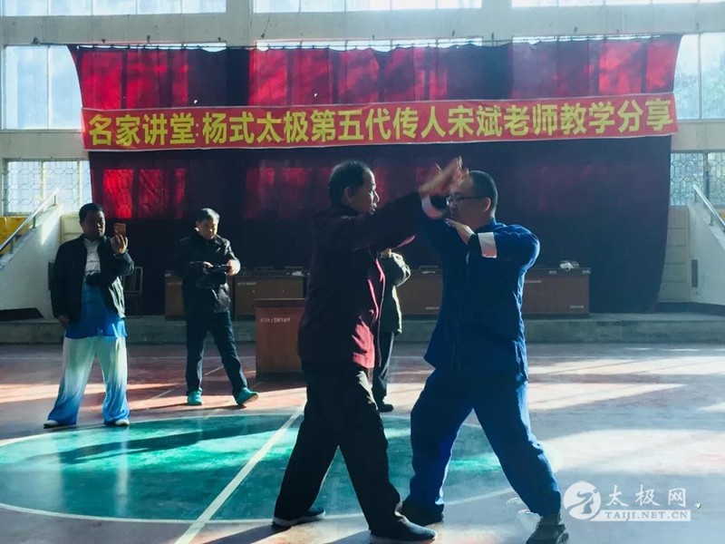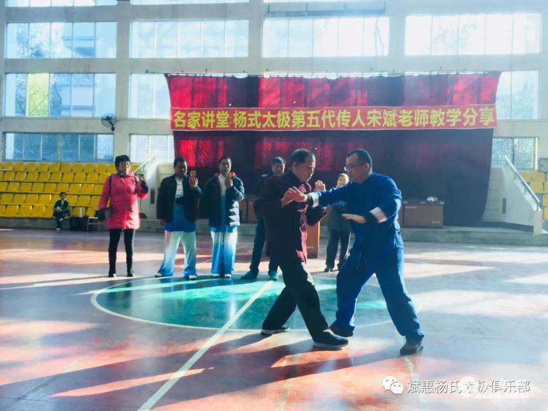 此次连州行,还有一个很大的主题便是“大爱”。连州属于粤北山区,甜甜的菜心和美味的腊味却名声远扬,大家纷纷采购,也算是一次扶贫项目了。 游览静福山 此次旅程名为「红星之约」,我们来到保安镇中心学校,与师生共同聆听分享。中共连州宣讲团黄才友先生为我们进行「坚定文化自信,让红色基因文化焕发新时代光彩」专题讲座,带领我们走进十九大,解读"不忘初心,牢记使命"。 广州国之旅何总向大家介绍耿海薪博士生平 晚饭过后,一行众人下榻红楼宾馆连州市太极拳协会会长胡开祥先生亲临宾馆,力邀宋斌老师前往协会办公室,与一众骨干教练交流分享拳友们则换好服装,为第二天的表演紧张彩排。冀文孝师叔教授精要套路二十三式。精要套路由杨氏太极振铎系第五代嫡传掌门杨军老师新编。 连州第二天,一早早饭过后,众人驱车前往连州中学体育馆,将在这里进行“大宋体育太极广州站-连州市太极拳协会学术交流活动暨杨式太极第五代传人宋斌老师名家讲堂”。参与此次交流活动的嘉宾有:连州太极拳协会会长胡开祥院长,老会长曾记连,副会长陈景华、马丽婷女,办公室主任蒋丽玲,以及广大热情的连州太极拳拳友。 中国武术七段,杨氏太极第五代传人,大宋体育太极创始人兼董事长宋斌,杨氏太极第五代传人冀文孝先生,杨氏太极第六代传人丘恒山,广州国之旅旅行社总经理何其幸女士,以及广东省老干部大学太极班,华南理工大学老年大学太极班,广州老年大学的拳友们也到场参加本次活动。 宋斌授课 首先,宋斌老师为我们带来了关于传统杨氏太极的专题讲座。连州地区的太极拳运动由来已久,也声名远扬,多次在省市比赛中取得优异的成绩。宋斌老师结合自己教拳三十余年的经验总结,与大家分享传统杨氏的风格特点,以及教学方法。带领大家共同体验桩功,以及放松的功法。最后,还向大家展示了“掤捋挤按採挒肘靠”八法劲,以及推手对练的表演。 讲座过后,是由广州、连州两地拳友共同带来的节目展示,有精要套路二十三式、太极剑、太极刀、太极功夫扇等。最后,广州、连州的拳友们共同练习太极拳。 短短两天连州的活动已经结束,但是留在每个人心中的,都将是无穷无尽的美好的回忆。参加本次活动的拳友们纷纷表示,活动意义重大,不仅完成了耿海薪博士的心愿,同时也充分感受到了连州地区浓厚的太极拳氛围,还现场接受了宋斌以及多位太极名师名家的指导,获益匪浅。宋斌表示,非常感谢广州国之旅旅行社为本次活动所作出的辛苦努力,对参与本次活动的拳友表示感谢,同时对连州个相关单位对活动给予的帮助和支持表示衷心的感谢,并表示今后将会继续致力于太极拳的推广和传播,让更多的人通过太极拳获得健康和幸福,共享太极,共享文明,共享健康。 责任编辑:太极网陈超 |