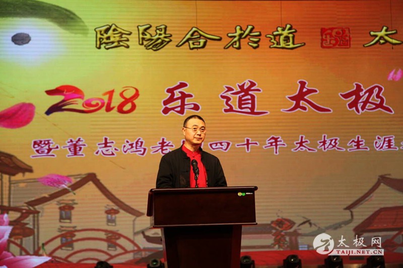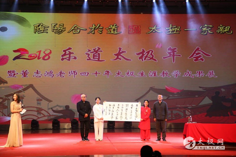 (太极网南宁报道)2018年1月13日,“乐道太极2018年《太极盛典》暨董志鸿40年太极生涯教学成果展演”于广西老年大学隆重举行。出席本次活动的嘉宾及领导有广西老年大学、老干部活动中心、老干部党校周芯副校长、教务处长张起,广西体育局武术协会委员陈通远,北京多加多乳业集团董事长黄利,广西家庭(婚姻)驾校校长龙金宝,广西人健康事业俱乐部主任龙捷,西安乐道太极运营总监董泊辰等,南宁及广西地区数百名太极爱好者以及乐道太极全国各地分部众多“家人”欢聚一堂,其乐融融。 活动现场 太极网运营总监李超、太极网总编刘明菁受邀参加本次活动,太极网作为本次活动的特邀媒体对“2018乐道太极年会暨董志鸿40年太极生涯教学成果展”进行全程跟踪报道。 太极网现场报道 周芯讲话 活动开始前周芯副校长发表讲话,她充分肯定了乐道太极多年来为南宁及广西地区太极拳的推广和传播做出的突出贡献,并对董志鸿老师40年的太极生涯表示崇高的敬意。陈通远委员在讲话中首先向董志鸿老师多年来为太极拳在广西南宁地区的推广和传播付出的辛苦努力表示感谢,并预祝本次庆典活动圆满成功。 陈通远讲话 李超致辞 太极网运营总监李超代表致辞,太极网是乐道太极多年的战略合作伙伴,他代表太极网创始人、温县太极拳传承人联合会主席刘洪奇向乐道太极向董志鸿老师表示衷心的祝贺。董志鸿老师德艺双馨,在武术界享有盛誉,堪称当代太极拳名师名家。董志鸿老师创办乐道太极扎根南宁,立足广西,传播太极辐射国内众多省份,已经成为当今太极界极具影响力的传播队伍,祝愿董志鸿老师今后带领乐道太极团队继续为太极文化传播推广做出更多更好的贡献。 董志鸿讲话 南宁市南宗乐道太极文化传播有限公司董事长,南宁市乐道太极俱乐部创始人兼总教练董志鸿老师发表讲话。他首先代表乐道太极俱乐部全体弟子和学员,对参加本次活动的领导及嘉宾表示热烈的欢迎和衷心的感谢。随后,他简单概述了自己40年的太极生涯,简明扼要的叙述了乐道太极5年来的发展历程,并对一直以来对他本人以及乐道太极的发展给予关怀和帮助的各级领导及社会各界人士表示衷心的感谢。 董志鸿老师在讲话中提到,中共中央、国务院2016年发布的《“健康中国2030“规划纲要》专门指出,要扶持推广太极拳等民族民俗民间传统运动项目,党的十九大更是把全面全民健康提到了一个国家发展战略的高度,太极拳的传承和发展也遇到了一个千载难逢、前所未有的新机遇。因此,能作为一名普普通通的太极拳传承人,将家乡最正宗的太极拳带给每一位需要它的人,令他感到无比的幸福和自豪。他衷心的希望每一位来到乐道的人都能“把汗水流下,把健康带走”。 董志鸿老师讲话结束后,乐道太极教学成果展演来开序幕。首先登场的是狮山公园太极队及乐道太极陈文萍教练等人带来太极功夫扇表演。只见场内众人伴随着悠扬的曲调武动太极神韵,一招一式尽显太极扇的优雅飘逸。 广西老年大学是乐道太极俱乐部的教学点之一,为太极拳的推广和发展作出的不可磨灭的贡献。老年大学陈式太极拳2016届B班的太极拳剑表演——赤子丹心也充分展示了太极拳教学的卓越成果,精彩的表演也引发了现场雷鸣的掌声。 柳州乐道太极辅导站在站长蔡凤鸾老师的带领下表演陈式太极拳十三式”。乐道平南太极拳辅导站在董志鸿老师的弟子许华明、周敏敏及潘琰老师的带领下用拳和剑武动古韵太极。嘉年华太极辅导站为表演精彩绝略的“太极百通拳”。 梧州乐道太极队用“剑胆慧心”剑挑“人工钻石之都“。 除了精彩的太极拳表演,现场还进行了精彩的文艺节目表演,国家二级演员、广西歌唱大赛一等奖获得者,著名主持人和歌唱家黄弘演唱《当你老了》,老年大学2017级尹培莹等表演节目:最美不过夕阳红。 随后,桂平太极辅导站表演拳剑组合表演——英雄正气!乐道太极桂林辅导站表演节目:醉墨飘香太极情,乐道太极教练为大家奉献的精彩表演——侠骨柔情。 精彩的表演将活动现场气氛拉向高潮,乐道太极在2017年的发展也如现场的气氛一样,高潮不断。“2017世界百城千万人太极拳展演活动”,南宁作为广西唯一的举办地,乐道太极俱乐部作为和太极汇承办了这次活动。2017年9月9日,上千名太极拳爱好者齐聚南宁孔庙,“2017世界百城千万人太极拳展演南宁站”取得了圆满成功。董志鸿老师在本次年会和庆典活动的现场,对在展演活动中作出特殊贡献的单位和个人进行表彰。董志鸿老师上台颁发《太极使者》证书! 乐道太极积极响应党的号召,正在稳步推进太极拳的“六进”活动。广西区工商局就是乐道“六进”的一个典范,区工商局也在现场进行了精彩的太极拳表演。董志鸿老师梧州的得意弟子伍万华和李珊,表演“太极之乐”。 南宁乐道太极俱乐部进行太极拳集体表演随后,乐道太极俱乐部杜博、郭敏、颜彩婷三位教练为大家展示2018年乐道的新课程之一,陈式太极拳新架十八式。红豆旗袍队表演旗袍秀。廖慈健、卢津、夏侯选诗和游光辉四位即将拜入董志鸿老师门下的优秀太极拳爱好者用一段精彩的表演——不忘初心太极缘献礼年会暨五周年庆典活动。 伍万华、李珊太极拳表演 董志鸿老师的得意弟子朱英杰、吴杰华展示“太极散手42发劲”。 广西武警总队