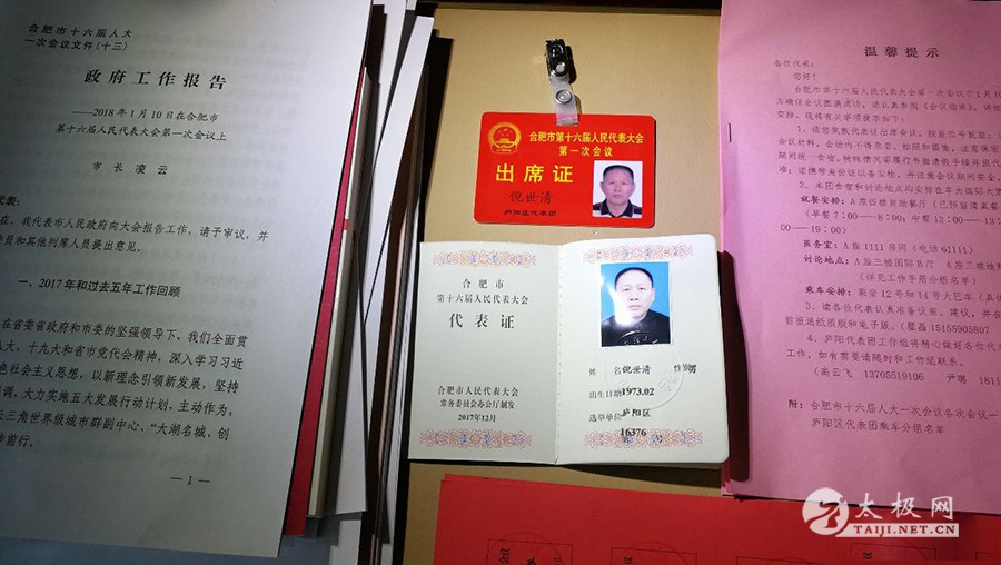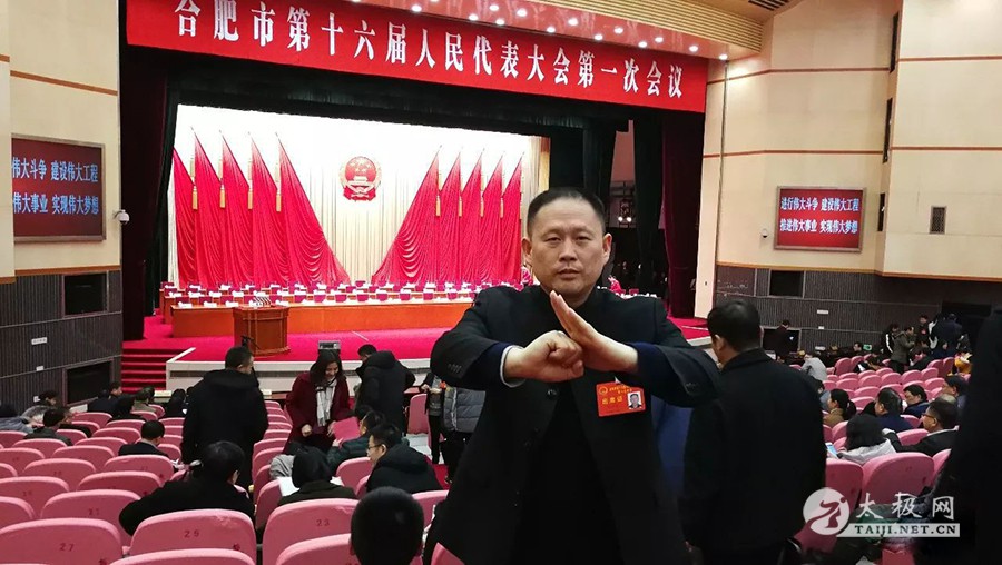 (太极网报道)1月10日,在雄壮的国歌声中,合肥市第十六届人民代表大会第一次会议在合肥大剧院隆重开幕。510名合肥市人大代表参加了大会。在这来自各行各业市人大代表中有一位来自合肥民间武术界的代表,他就是合肥富光世清太极拳馆馆长倪世清,这是合肥市唯一一位从事武术太极拳教练职业当选市人大的代表,这是合肥民间武术界的荣耀,是武术界杰出的代表,也是政府对合肥富光世清太极拳馆及馆长倪世清多年造福于民,推广全民太极拳健身运动取得辉煌成绩的肯定,也是广大武术爱好者以及专业从事体育健身事业的骄傲,有这个职业的代表参政议政反映爱好武术太极拳人们的心声,对推动全民健身运动迅速的发展有积极的作用。小编衷心祝贺倪世清馆长当选人大代表。